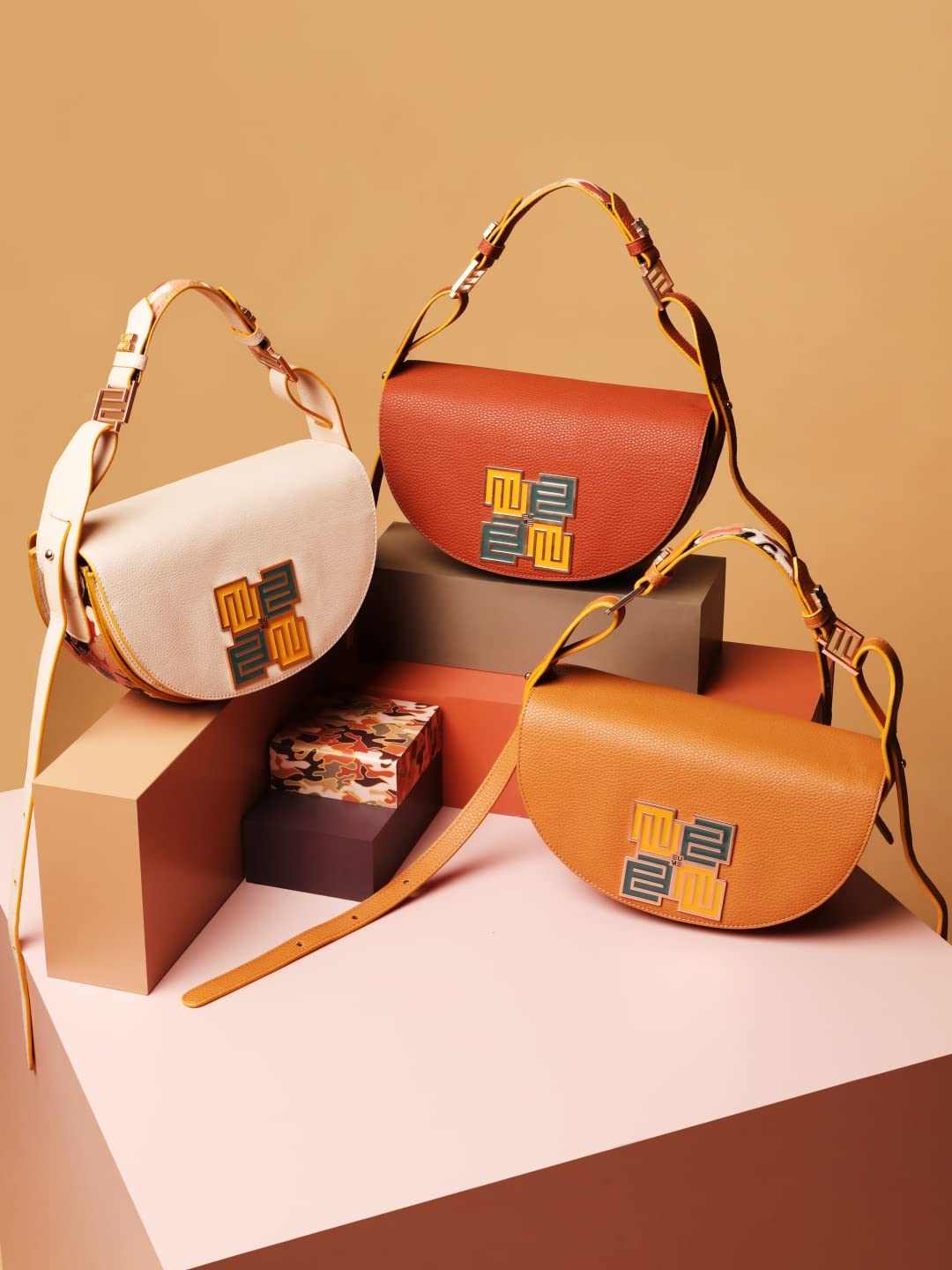 - EUME Skin Collection: Camouflage Design Pecan sling bag for women stylish is a Small Size women's Handbag with a Long Adjustable Sling Strap, Ladies Cross Body bag. This sling bag for girls is multi-coloured: Blush Pink, Tangerine and Mustard.