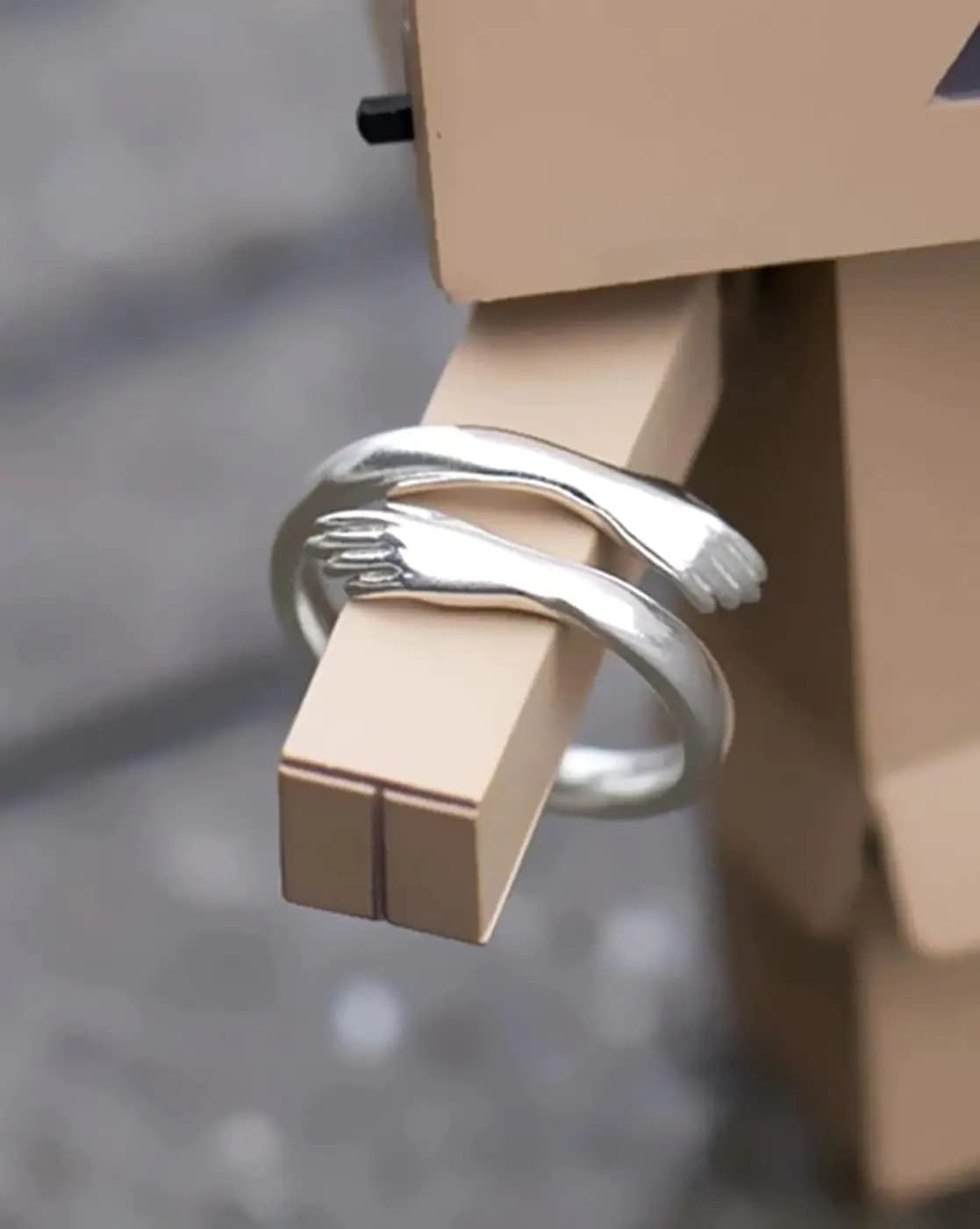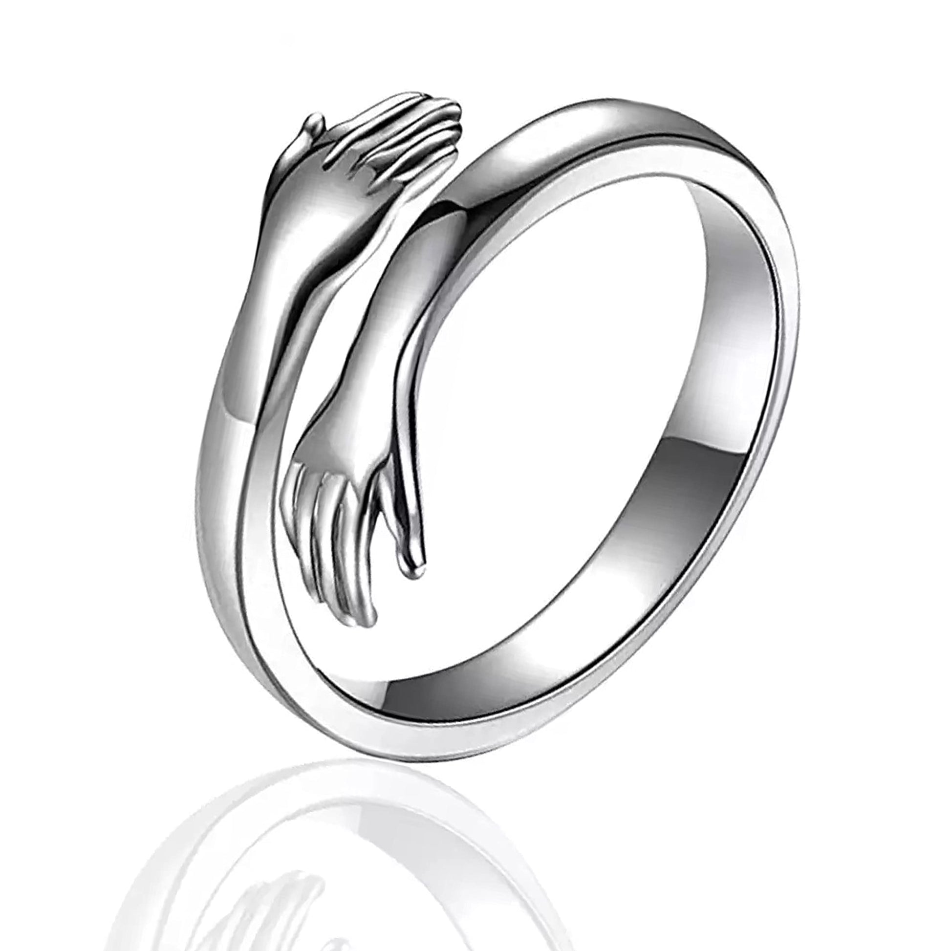 - Love Embrace Ring: Couple ring, love promise ring, double hand hug ring. You should give your friends and loved a warm hug, a loving hug, when they are sad and upset.