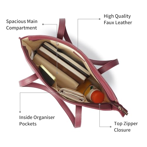 Fastrack Carrycore Tote | Cherry Red Faux-Leather Women's Bag | Spacious Tote Bag with Zipper Closure & Utility Pockets For Daily Carry | Eligible For 14" Laptop