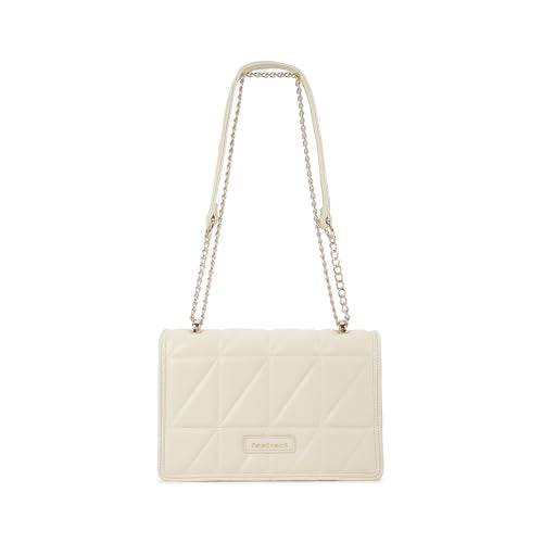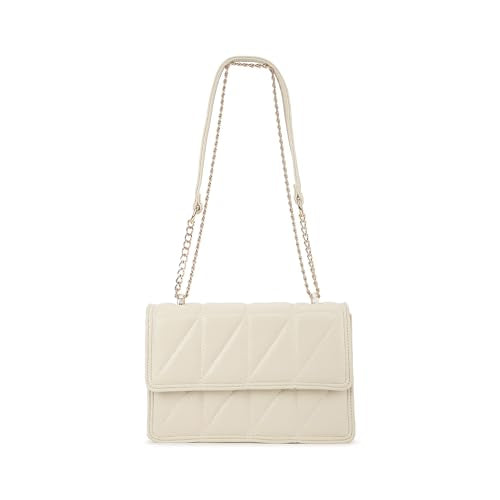 - Fashion Statement: This structured sling bag has a distinct look due to its subtle beige colour and gold hardware. Its magnet button closure and metal chain sling make it the perfect accessory for a brunch date. Its handheld design ensures the bag is comfortable to carry.