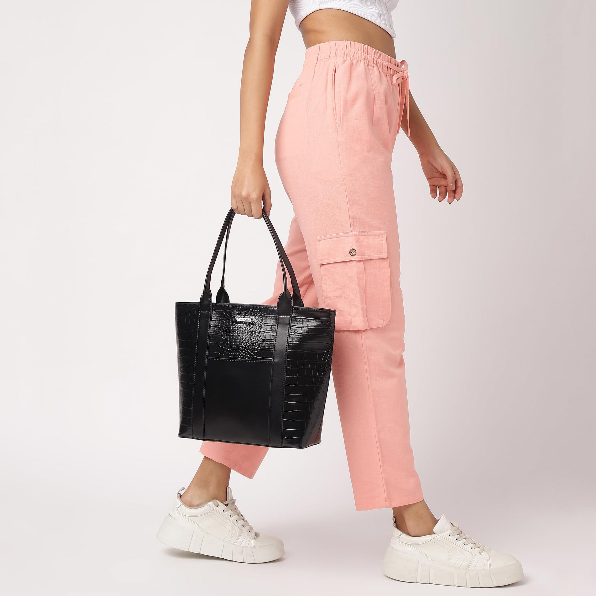 Fastrack Chic Textured Tote Bag for Women | Stylish Casual Bag for Ladies, Women, Girls | Trendy Everyday College Bag Made of Faux Leather