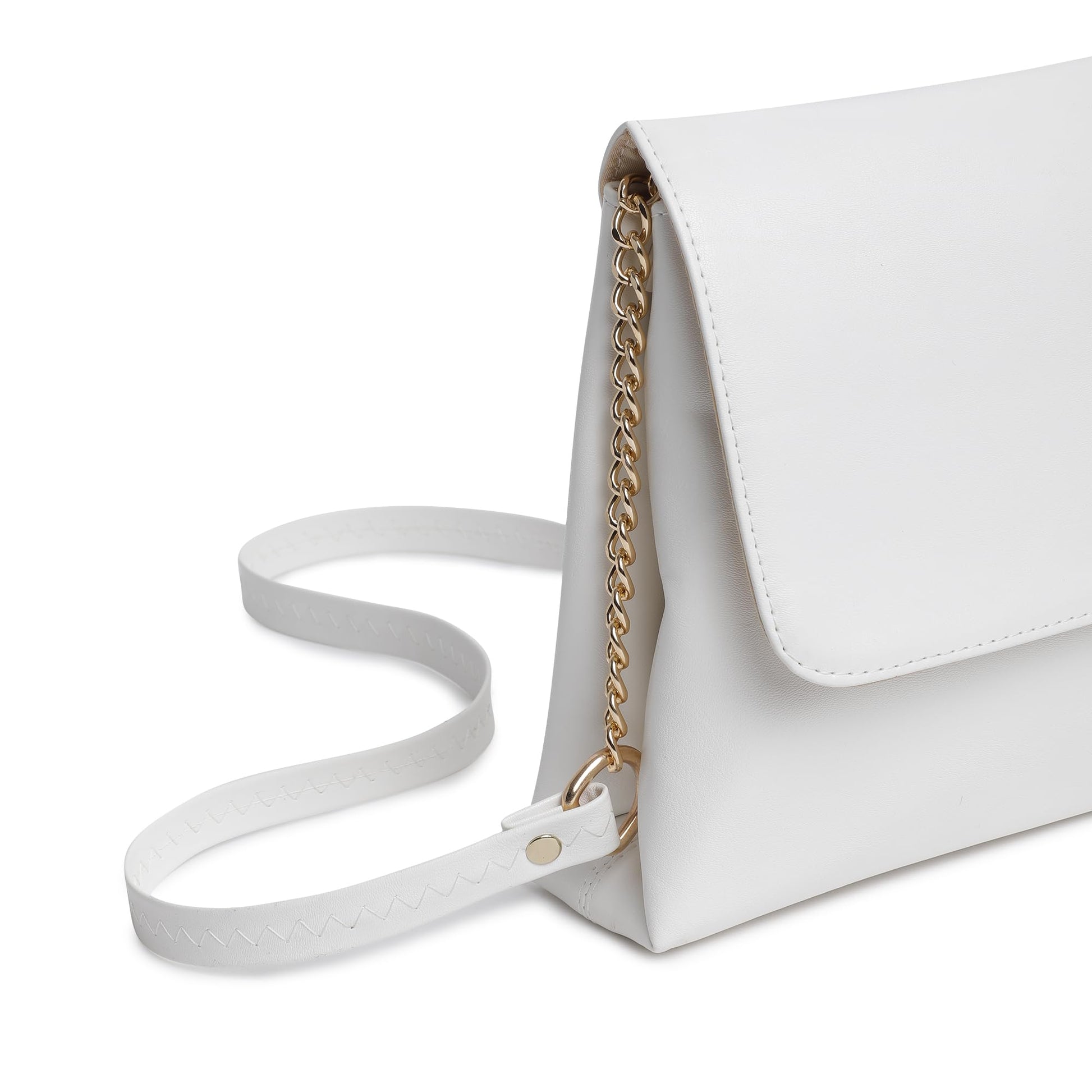 Fastrack Classic Envelope Sling Bag for Women | Stylish Crossbody Bag for Girls, Ladies, Women | Structured Handbag Made of Faux Leather (White)