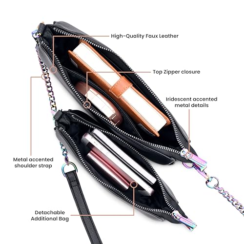 Fastrack Mystique Duo Sling Bag| Party And Evening-Carry Ladies Handbags| Faux-Leather Women's Handbags, Black