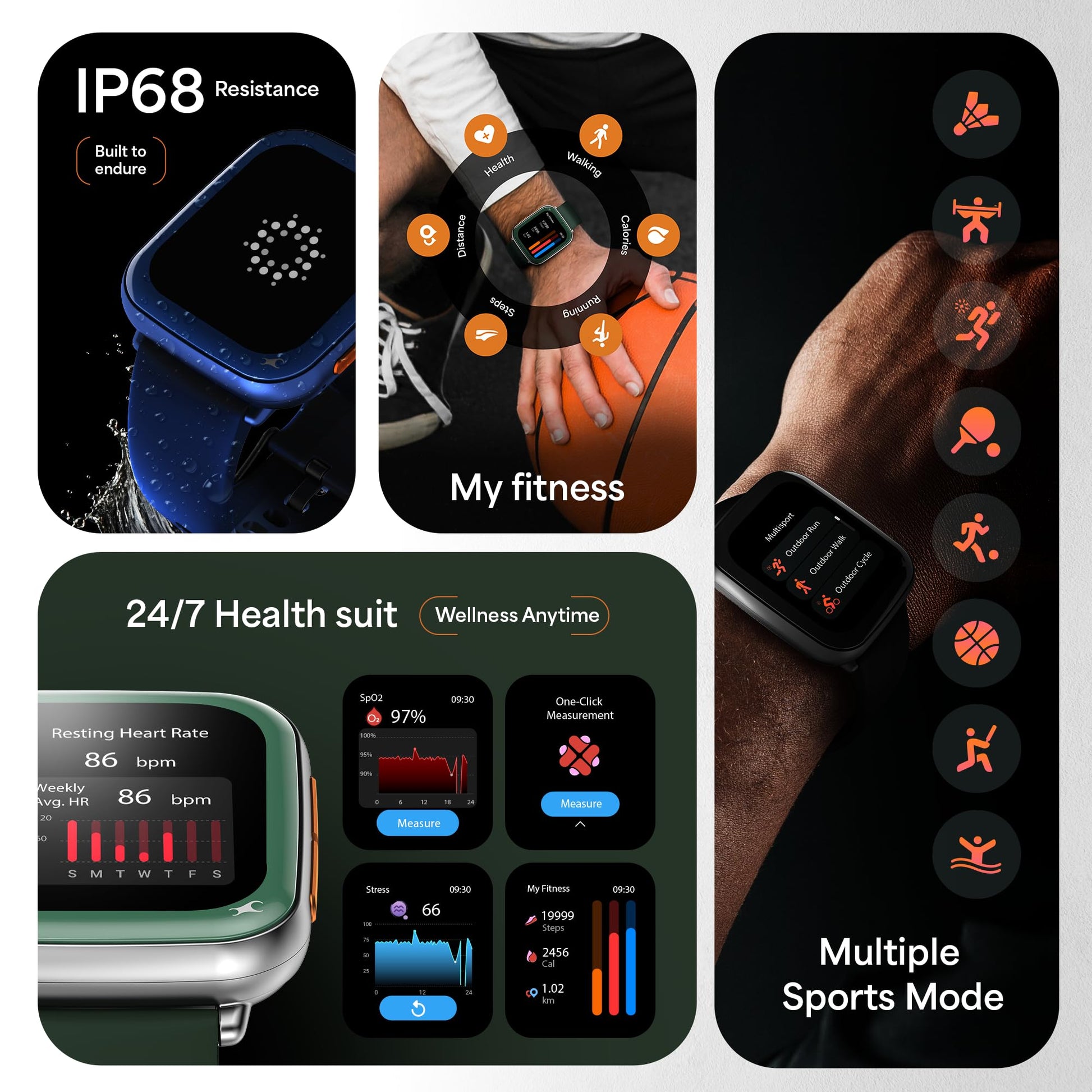 - BT Calling & IP68 Durability – Stay connected with Bluetooth calling and enjoy worry-free use with water and dust resistance.