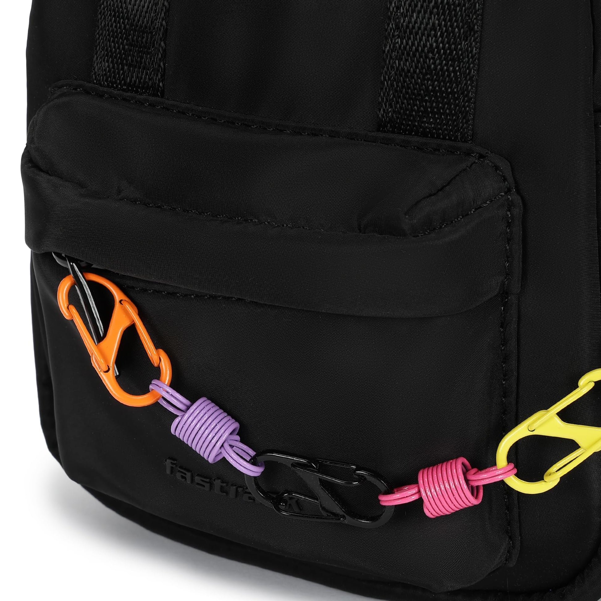 Sleek, smart, and designed to stand out — the Fastrack Nylon Sling Bag is made for girls who prefer clean lines with just the right dash of drama. Crafted in smooth, lightweight nylon, this fuss-free sling is equal parts functional and fashionable. The structured yet relaxed shape features a single front zip pocket for quick access, while the main compartment offers space for your essentials — phone, wallet, lip balm, or keys — all neatly tucked away with the help of an internal zipper pocket and a utility sleeve. What makes this bag a standout? The pop of bright chain links against its monochrome base. Whether you’re pairing it with streetwear, denims, or minimal basics, the chain detail brings that unexpected edge — making it more than just a carry-on, but a style statement. The detachable broad webbing strap allows you to wear it crossbody or over the shoulder, adapting to your mood and outfit of the day. Lightweight, practical, and easy to maintain, this sling is the ultimate companion for everything from quick outings to long campus days. Finished with silver-toned hardware and protected by Fastrack’s 6-month warranty, it’s designed for effortless impact, every day.