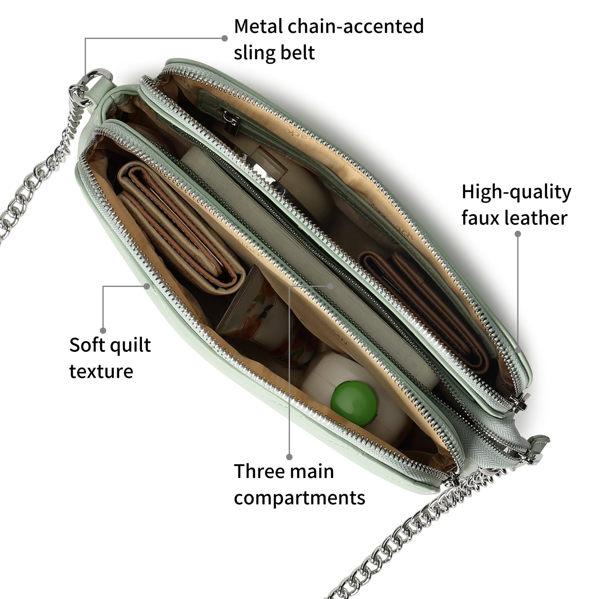 Fastrack Pastel Quilt Sling Bag for Women | Lightweight Quilted Crossbody with 3 Zippered Compartments, Detachable Strap and Soft-Tone Hardware | Stylish Everyday Sling for Casual Outings and College