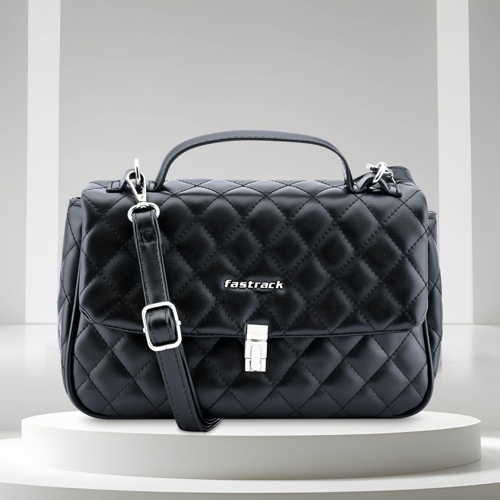 Fastrack Quilted Chic Satchel | Faux-Leather Women's Handbags| Ladies Purse Handbag | Satchel for Casual Carry
