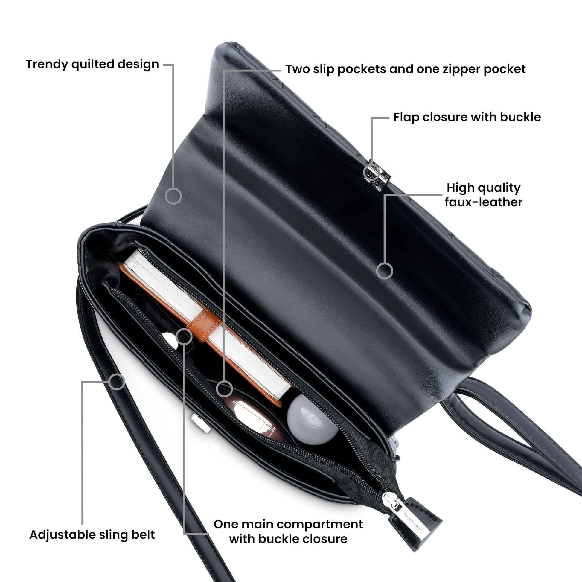 The Quilted Chic Satchel is a trendy and stylish accessory that's perfect for everyday use. Its quilted design adds a touch of texture and sophistication, while the adjustable sling belt makes it easy to carry. The flap closure with buckle lock provides extra security for your belongings, and the spacious interior offers plenty of room for your essentials. With its stylish design and practical features, the Quilted Chic Satchel is the perfect addition to your wardrobe.