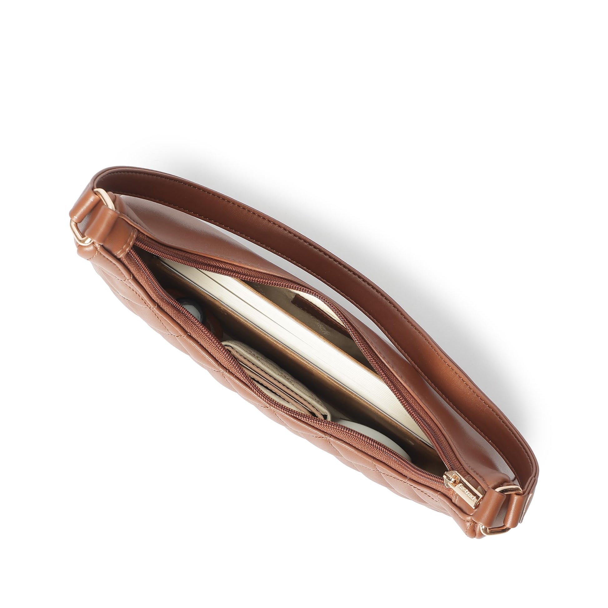 Fastrack Quilted Crush Shoulder Bag | Faux-Leather Women’s Bag | Zipper Closure with Silver Strap Accents & Utility Pockets | Gifts for Women