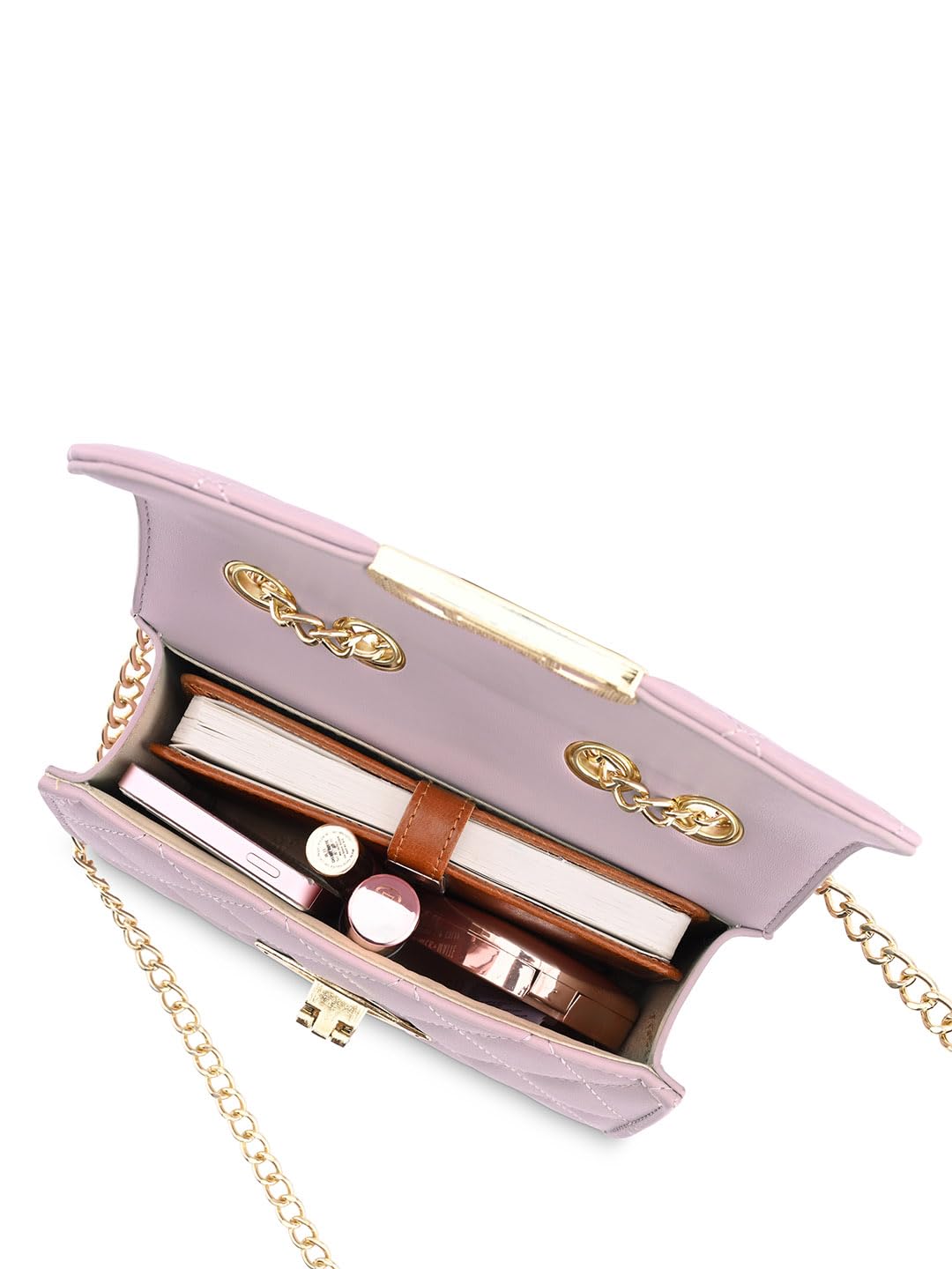 - Stylish quilted sling bag: A modern structured design aesthetic enhanced by the luxurious quilted detailing and metallic accents makes this bag steal the spotlight wherever you go.