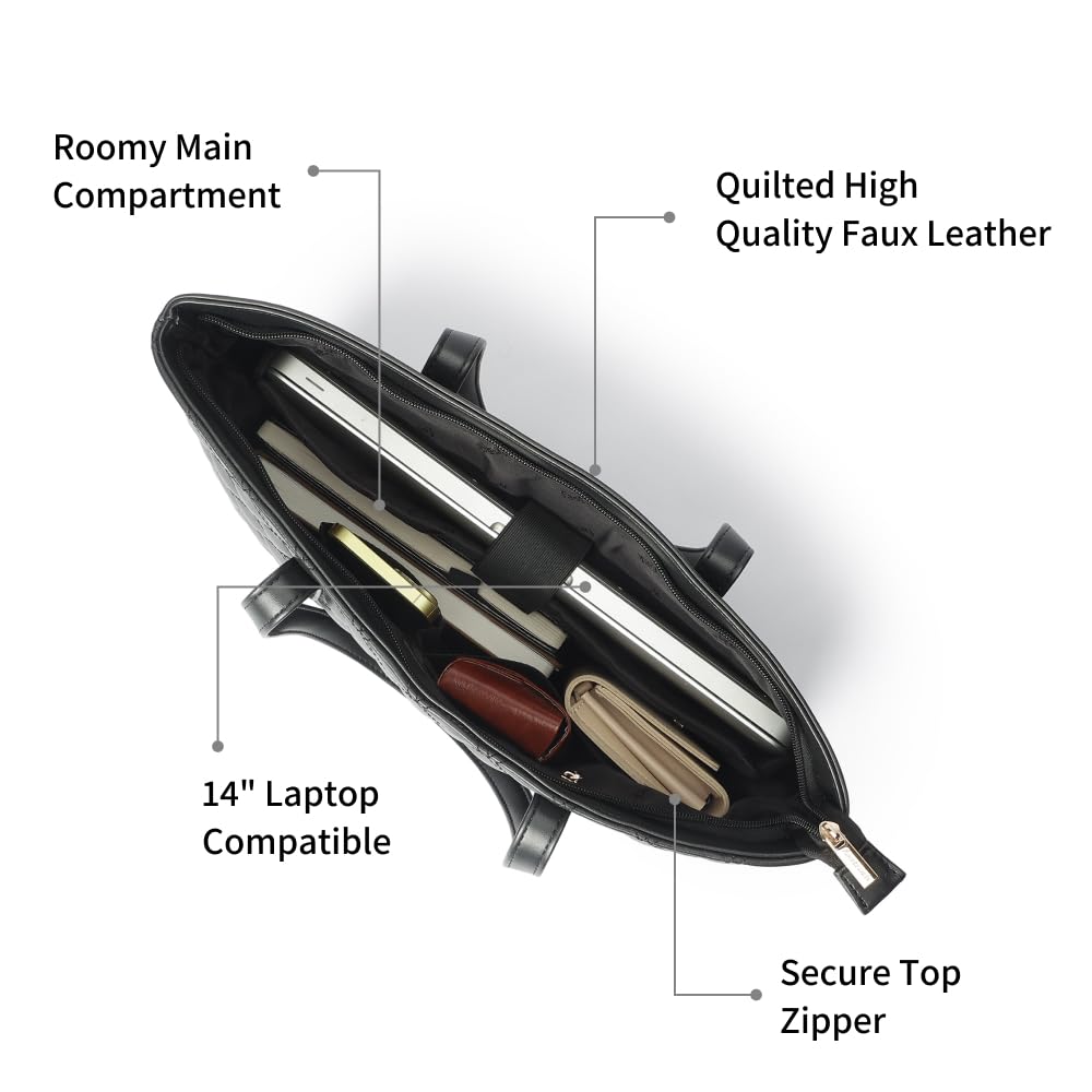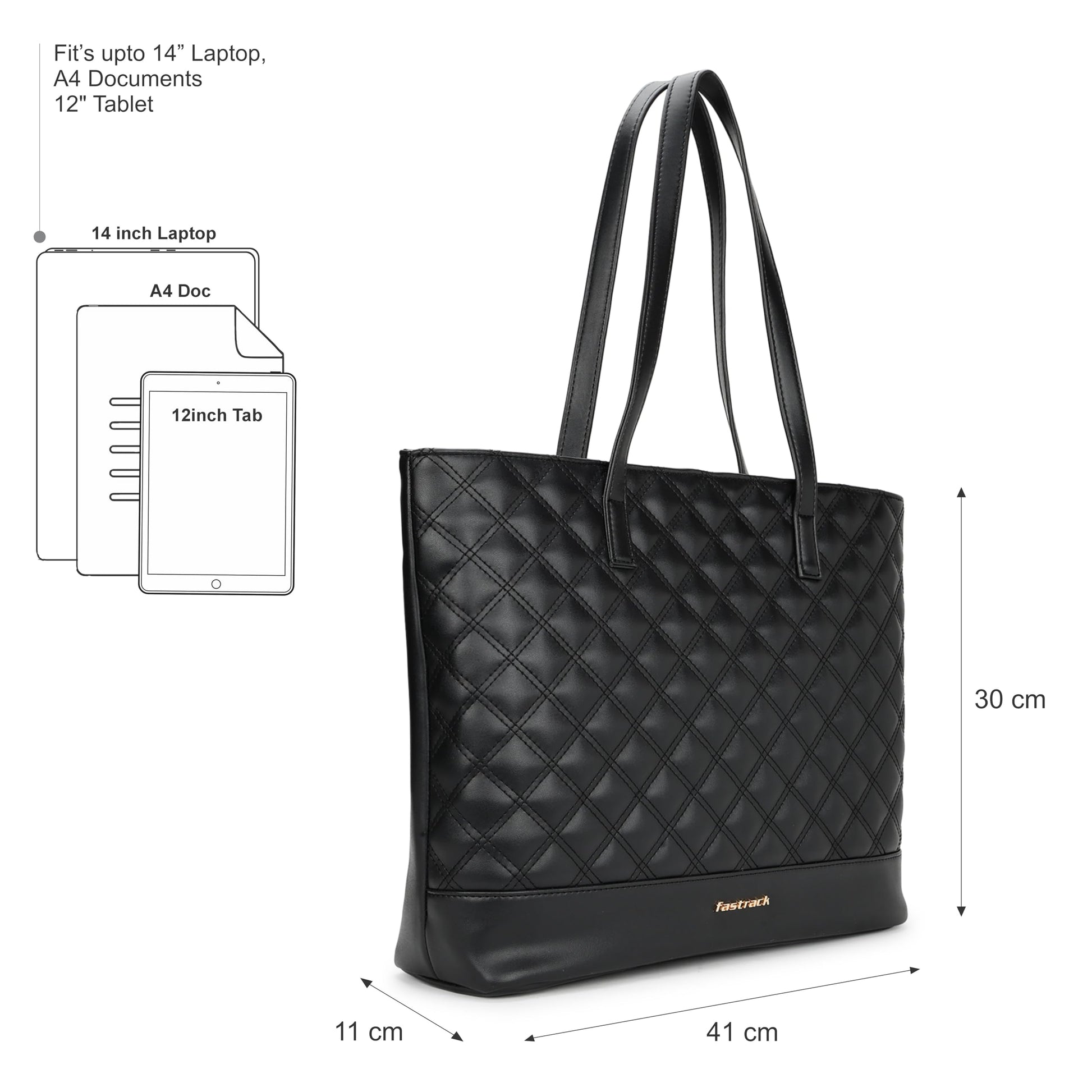 Fastrack Quilttote | Quilted Faux-Leather Laptop Tote For Women | 14-Inch Laptop Compatible Office & Casual Carry