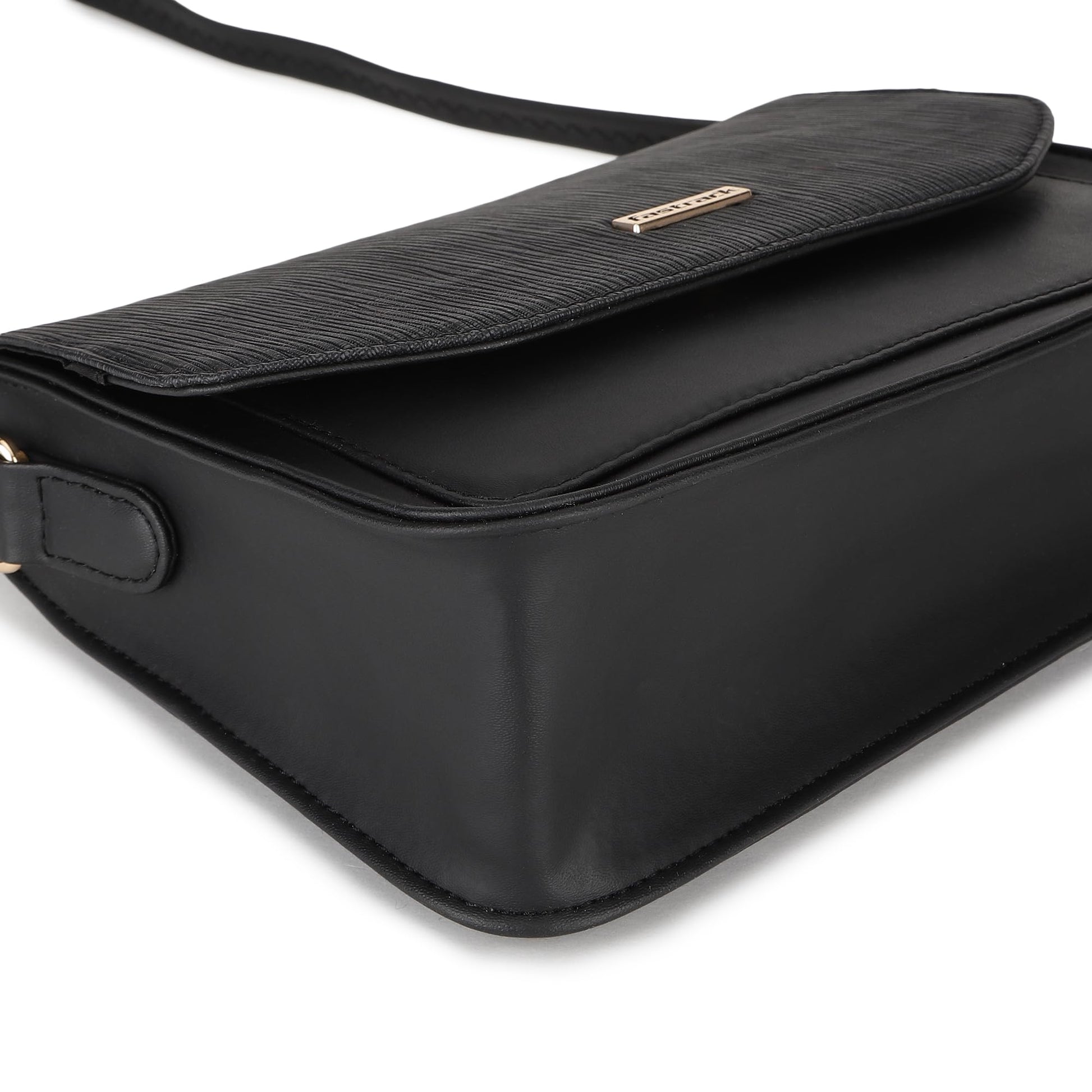 This on-trend sling bag boasts a unique textured finish in a versatile black colour. The adjustable strap offers hands-free convenience for any adventure.