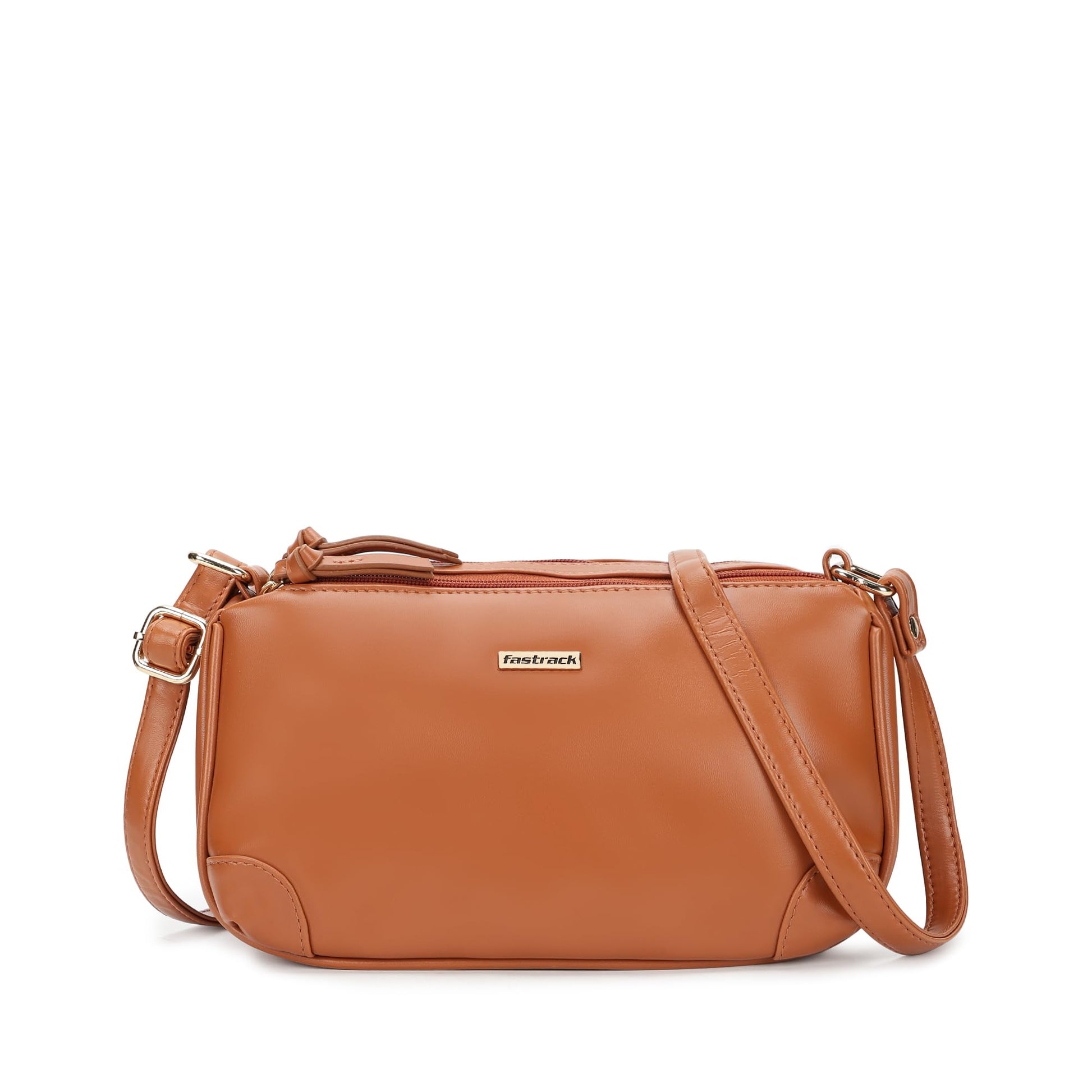 Fastrack Tan Sling Bag for Women | Minimal Faux Leather Crossbody with 2 Zippered Compartments & Quick-Access Pocket | Adjustable Strap Sling for Everyday Outings & College