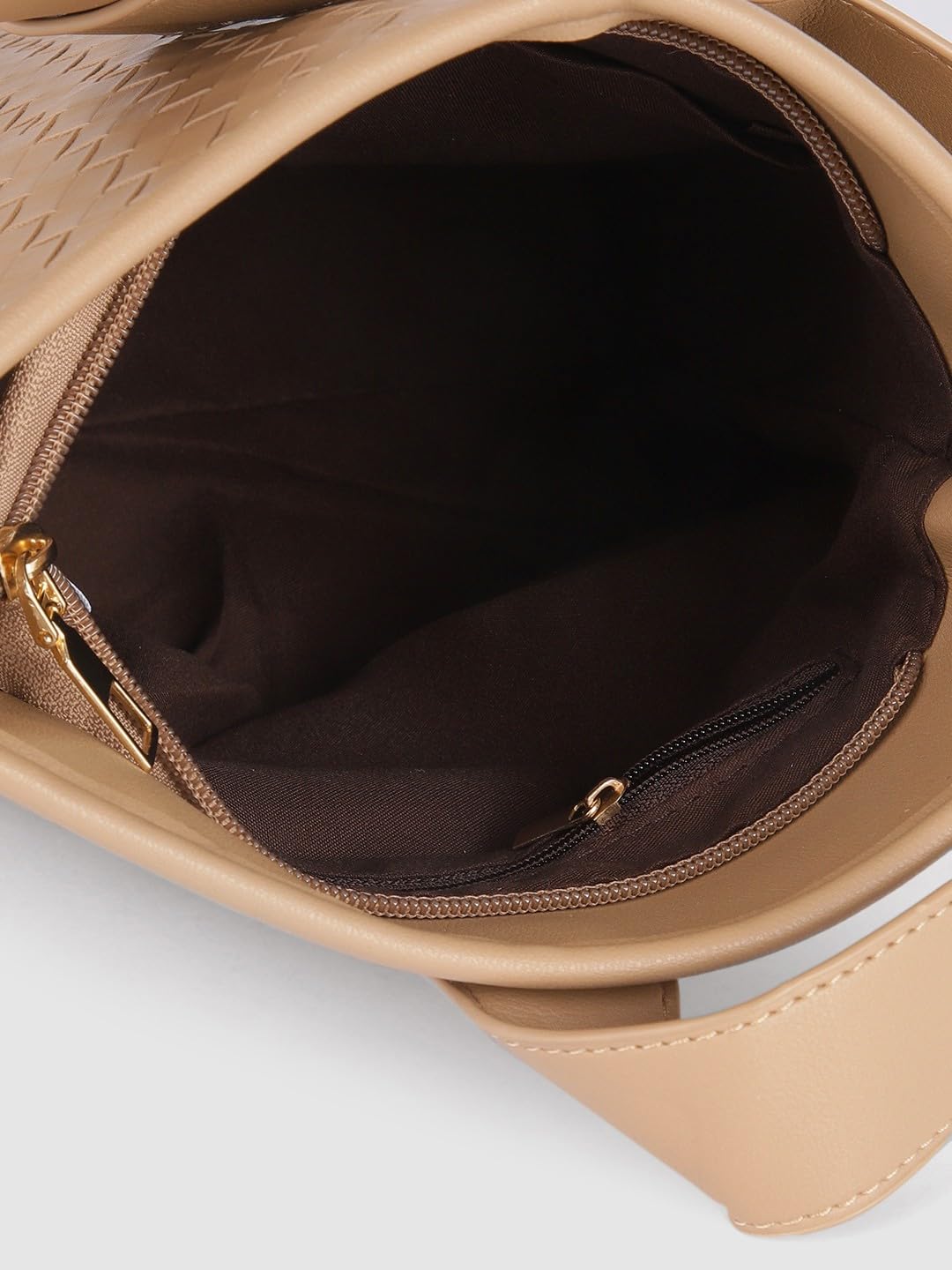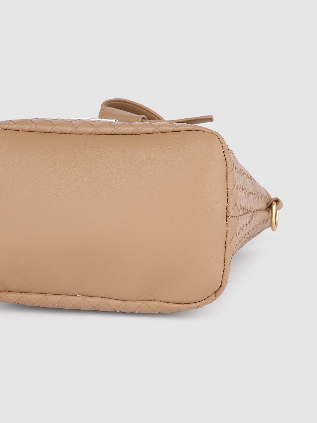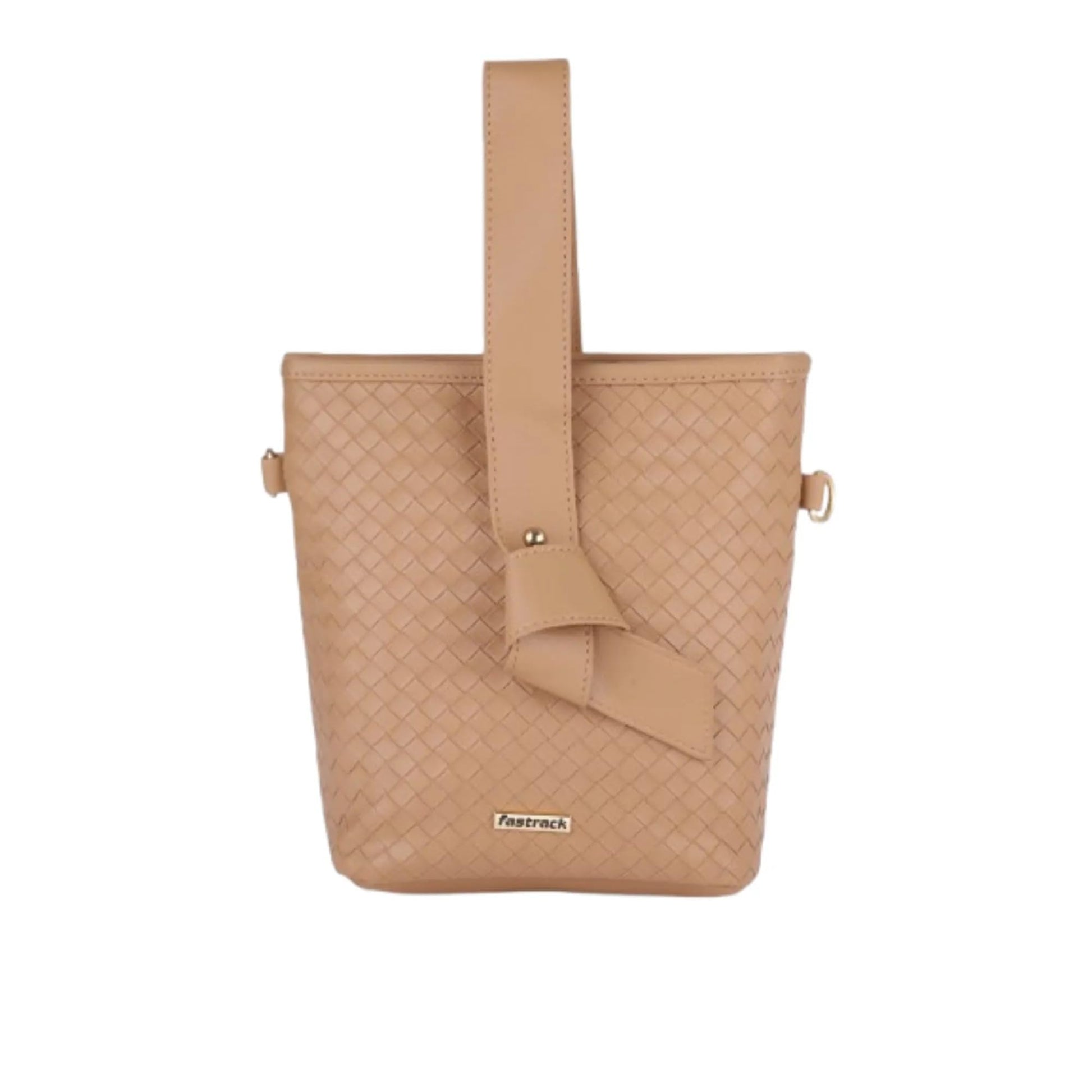 Fastrack Taupe Woven Design Bucket Bag for Women, Girls and Ladies | with Detachable Sling Strap | Handheld Bag for Women