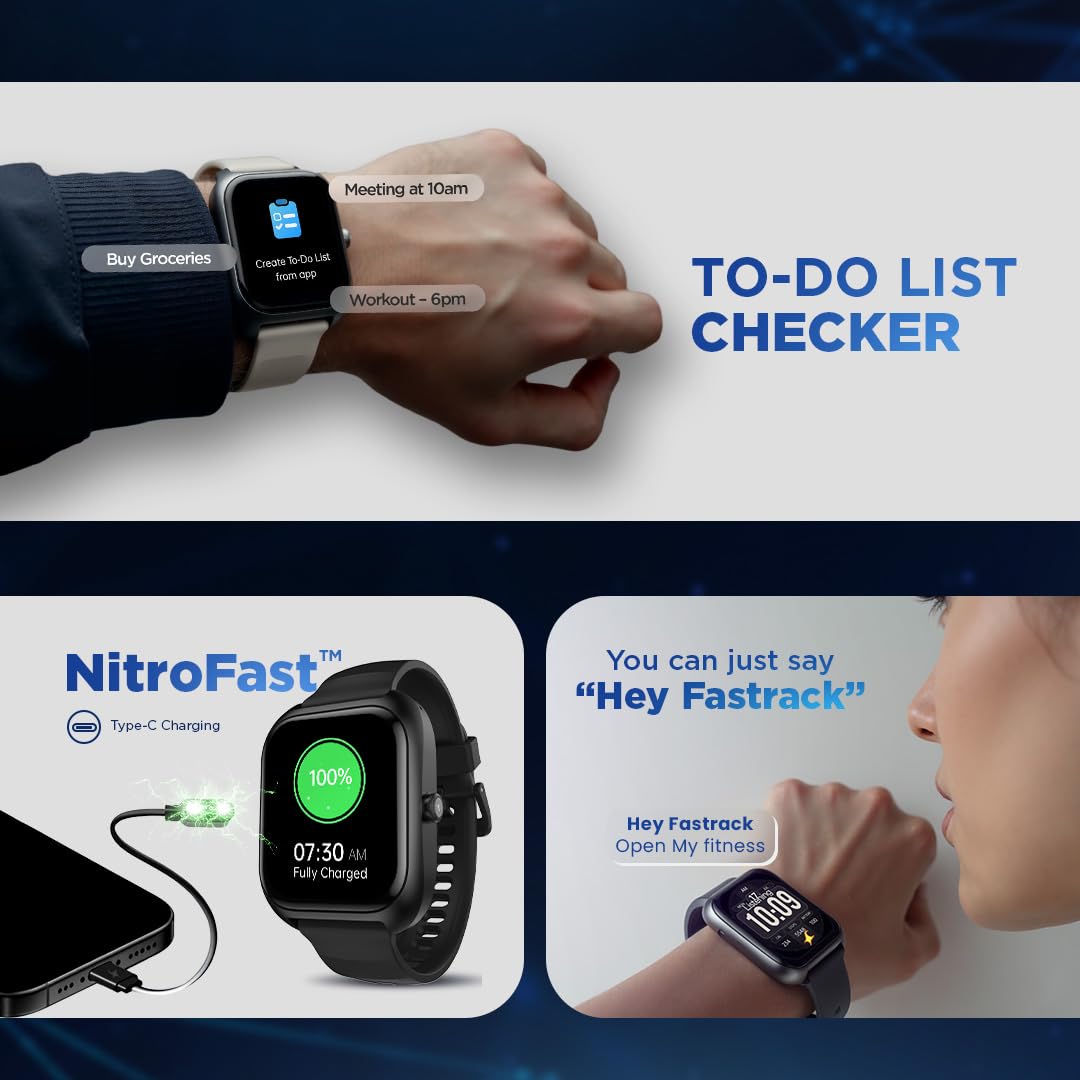 - Smart Features for Daily Life: To-do list, calculator, calendar, games, alarm, stopwatch, timer, multiple menu styles and rotary crown – Fastrack smart watches for man that double as productivity tools.