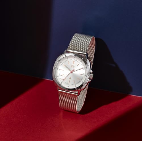 Fastrack Vyb Quartz Analog Silver Dial Steel Sheet Metal Strap Watch for Men-FV30014SM01W