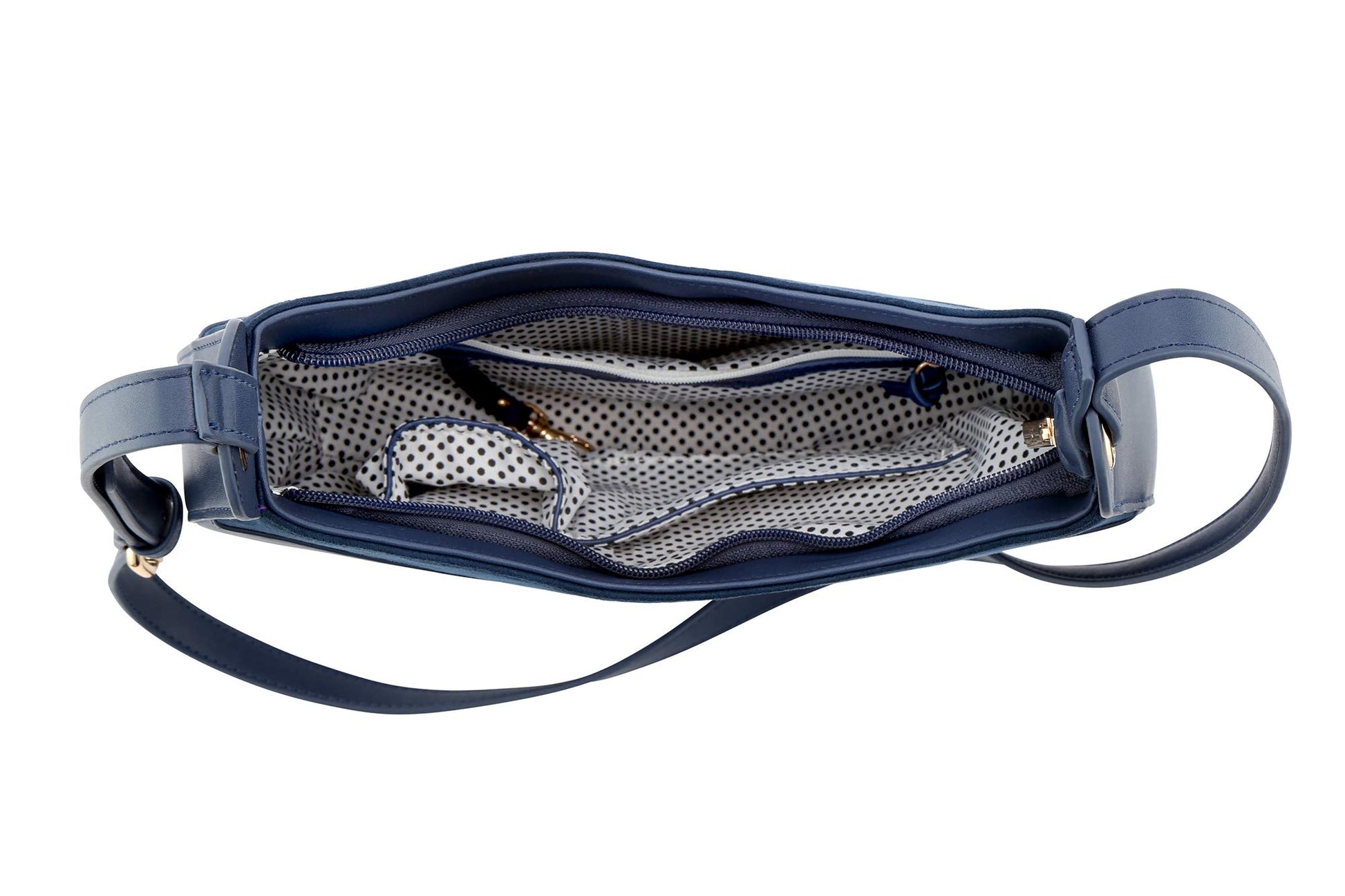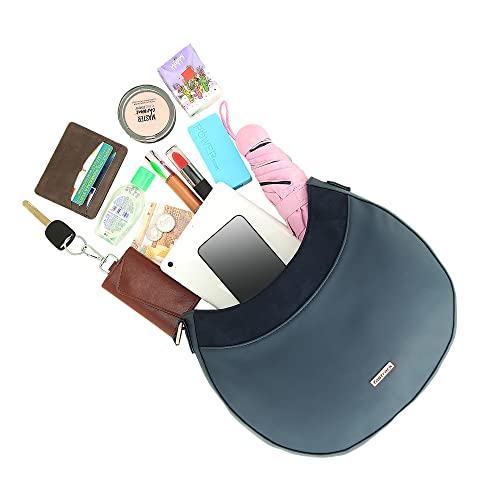 - Multi-texture finish: The soft suede and faux leather finish with the deep blue hues give this stylish sling bag a fashionable edge that lets you transition seamlessly from a day look to a night look.