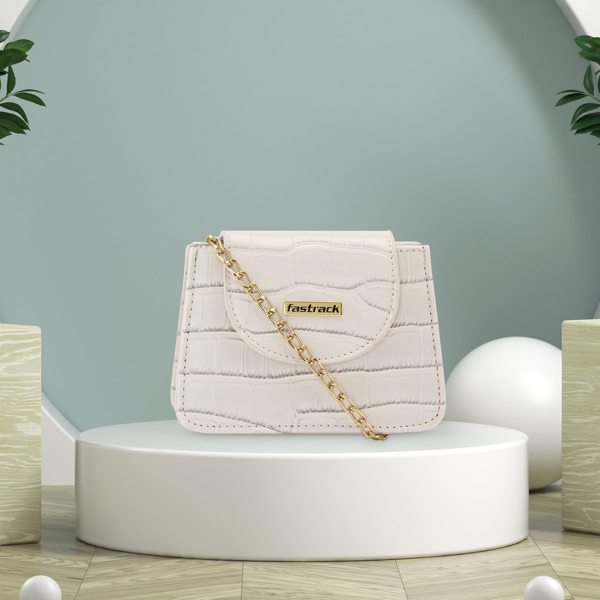 Fastrack Women Textured Pu Structured Shoulder Bag, White