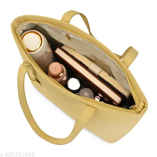 Yellow solid tote bag 1 main compartment, has a zip closure, Tablet sleeveno