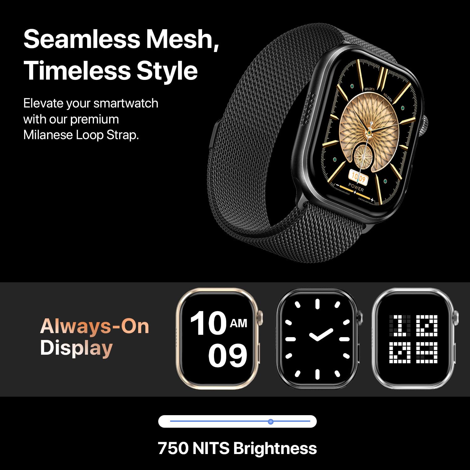 Fire-Boltt Brillia Pro Smart Watch with 51.3mm (2.02 inch) AMOLED Display, Bluetooth Calling, SpO2, Heart Rate Monitoring, 120+ Sports Modes, IP67 Waterproof, Long Battery Life (Black Mesh)