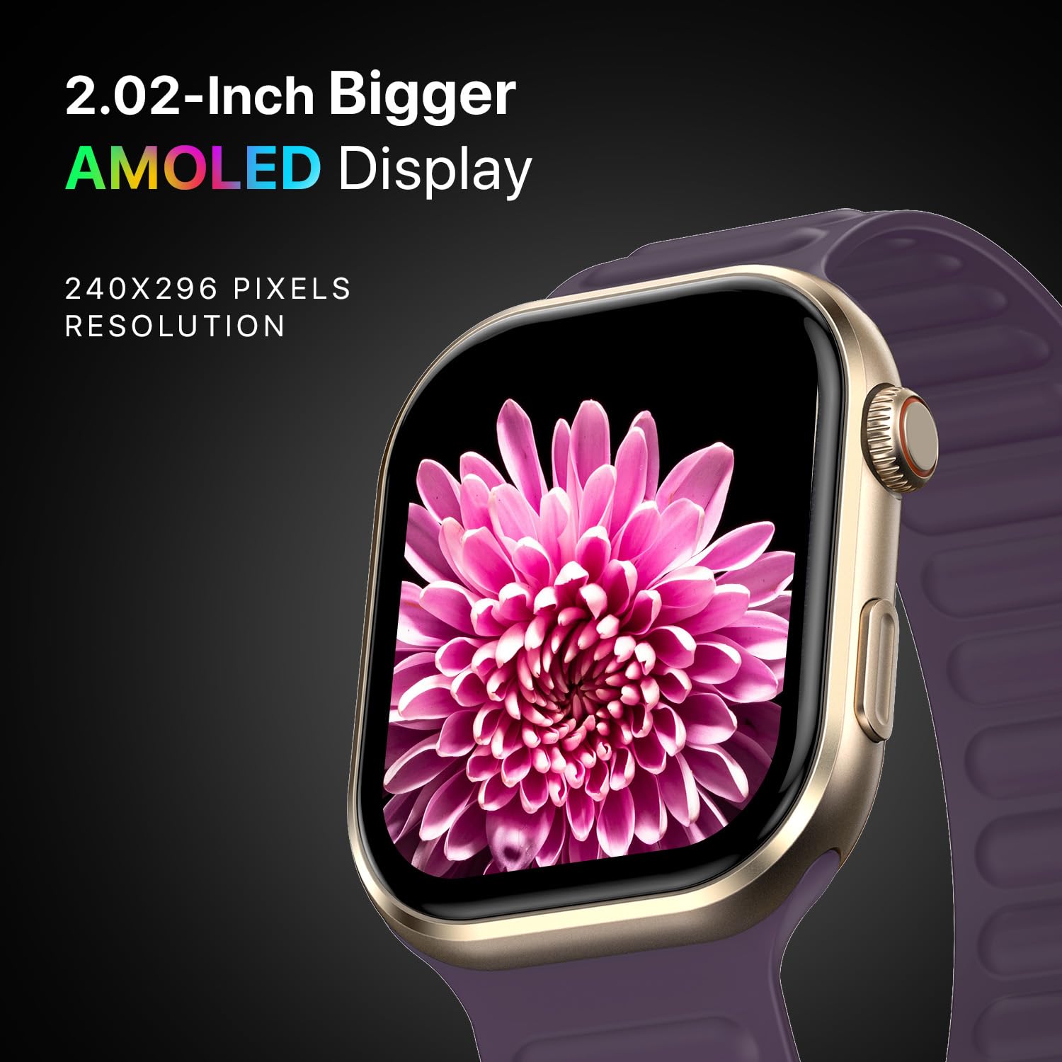 - (2.02") 51.3mm AMOLED Display with 750NITS Brightness: Experience vivid and clear visuals on the large 51.3mm always-on AMOLED display with a sharp 240x296 resolution and 750NITS brightness for enhanced clarity under any lighting.