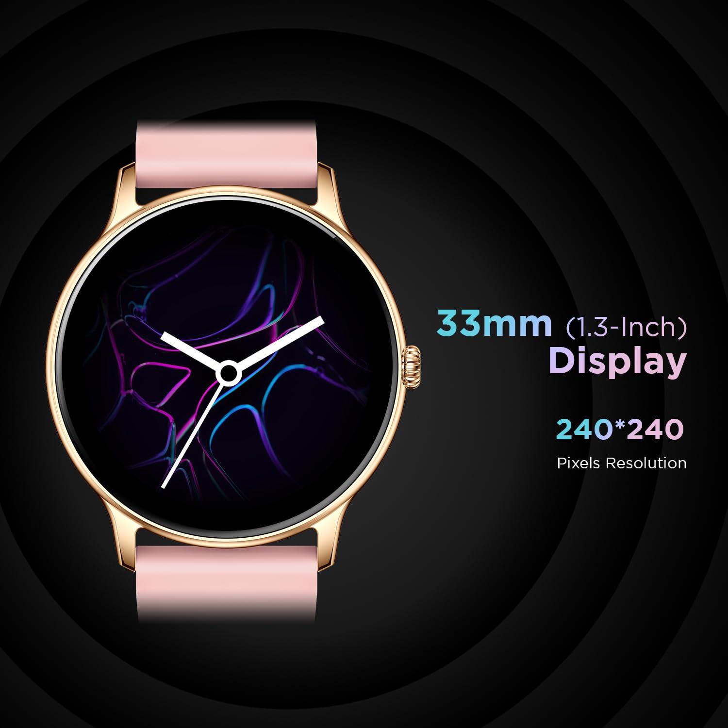 - 【High Resolution Display】- Comes with a 1.3 TFT Color Full Touch Screen and a 240*240 Pixel High Resolution this fashion smartwatch is covered to flaunt the sleek and stylish look always with 260 NITS Peak Brightness