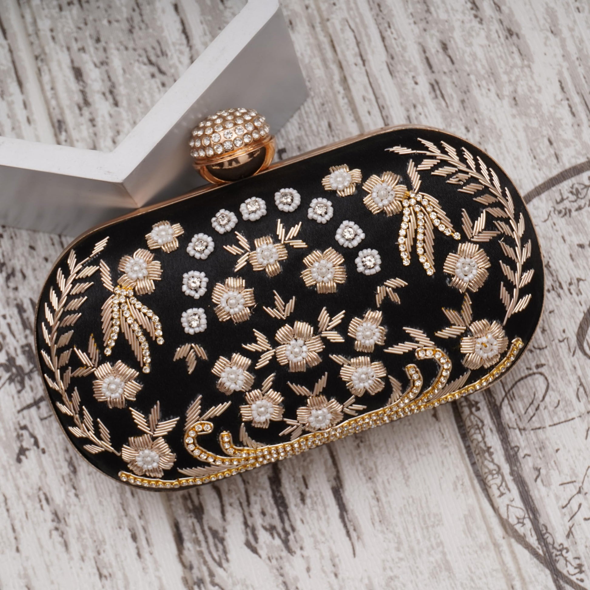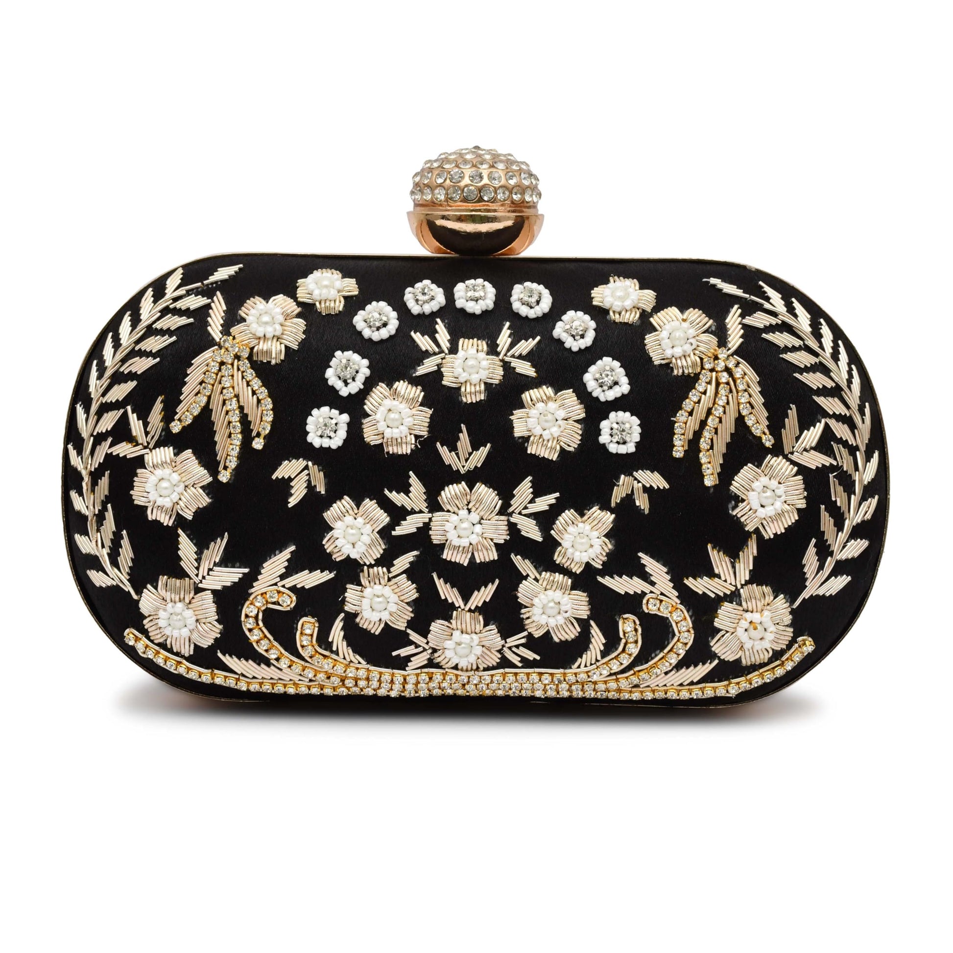 For The Beautiful You Black Embroidred Women's Clutch (cp-128)