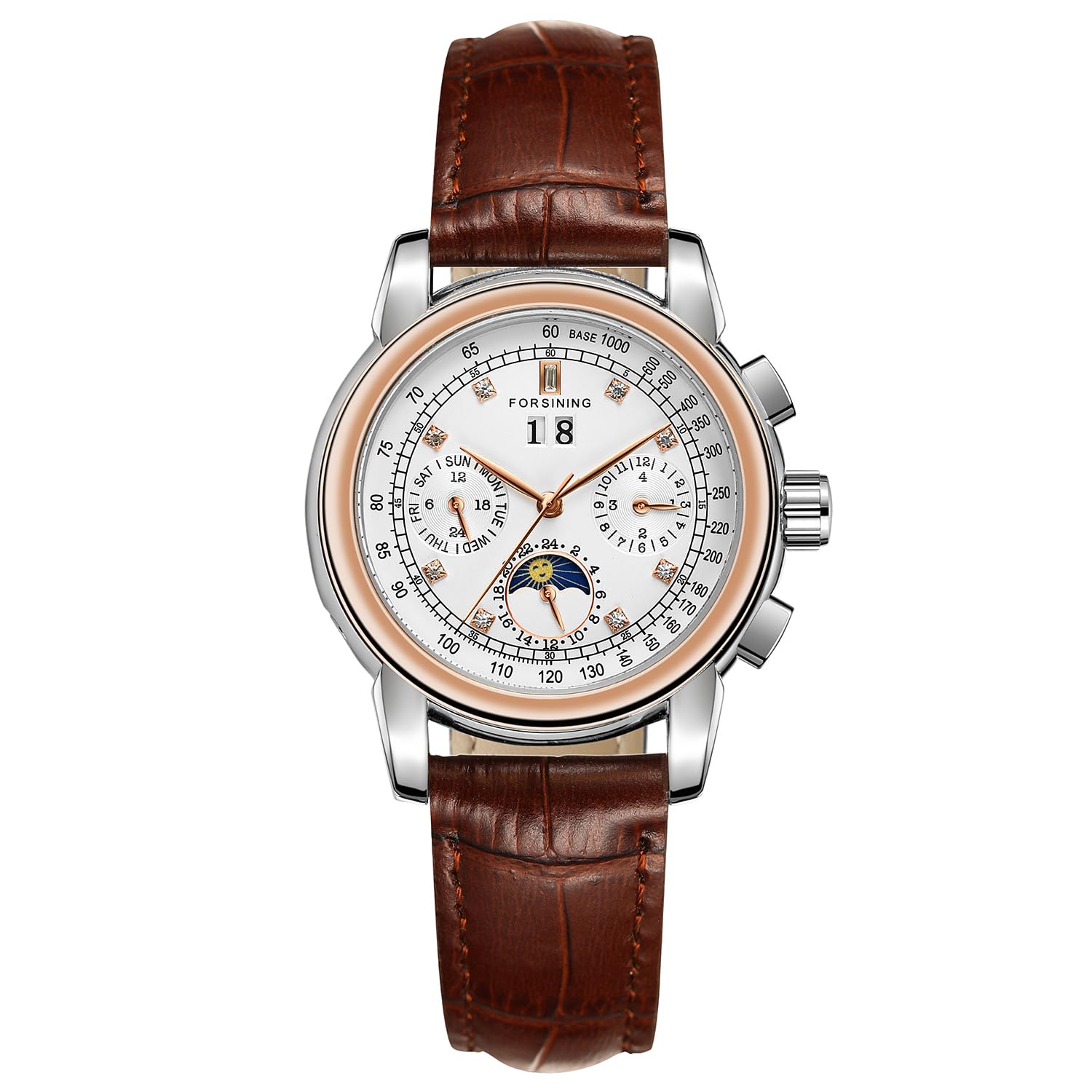 FORSINING Women Waterproof Automatic Business Watch Lady Calendar Self Winding Stainless Steel Moon Phase Wrist Watch, 1-Rose Gold, Modern
