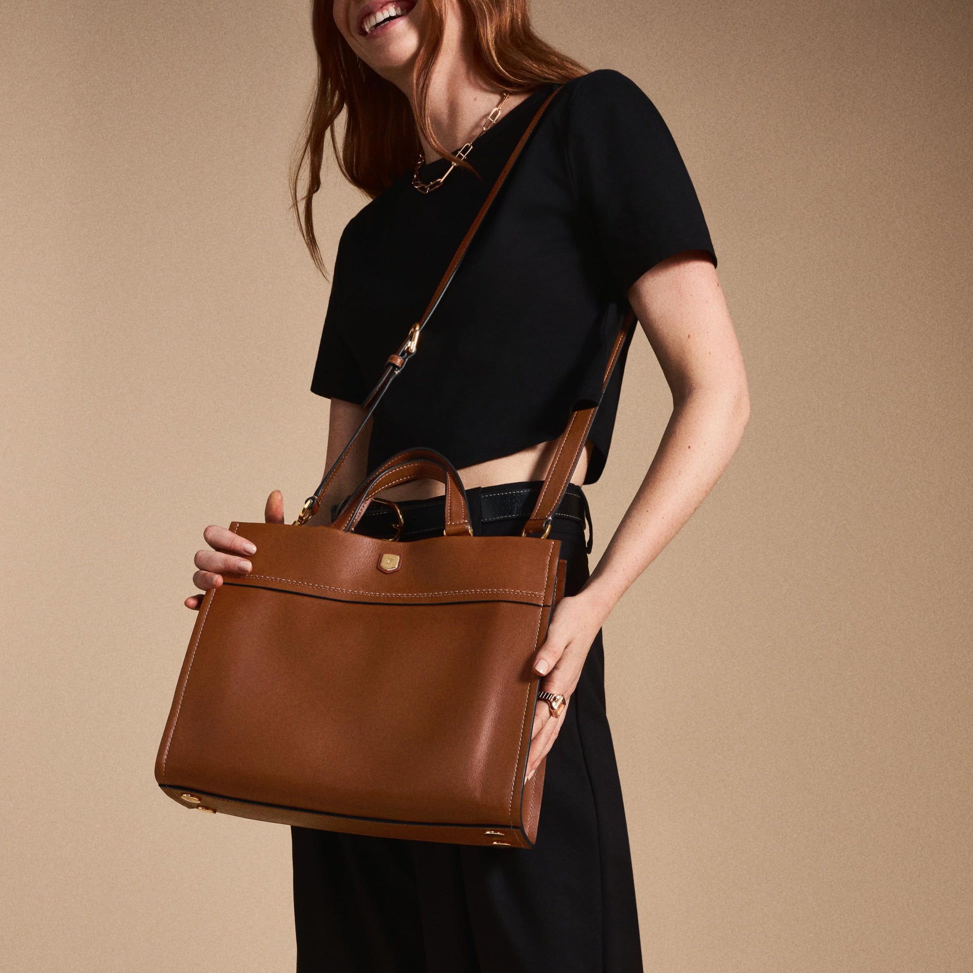 Take on the day with our modern do-it-all silhouette, Gemma. With smooth, natural grained leather that softens over time and polished hardware like our new Fossil Crest with knurling details, Gemma is the elevated, versatile tote that goes from office to weekend and everything in between.
