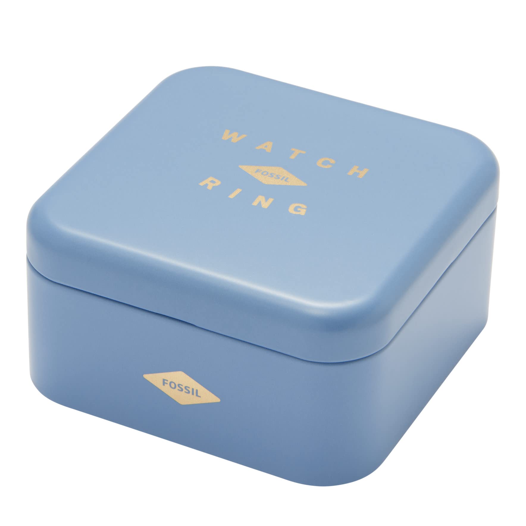 - Gold plated stainless steel with expansion band closure; interchangeable with Fossil 7mm watch straps
