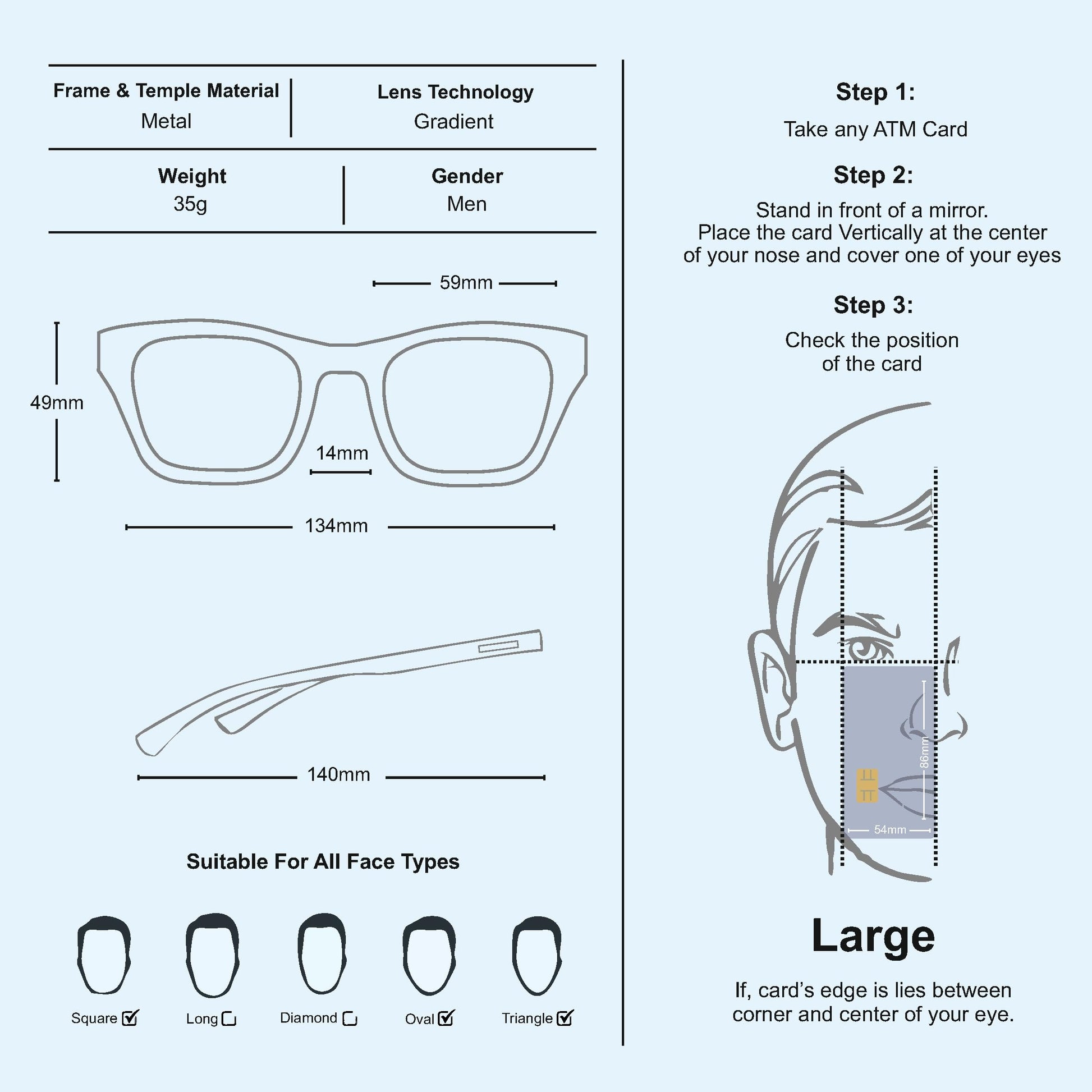 - Frame size: Lens width - 61 mm, nose-bridge: 13 mm, temple length: 139 mm