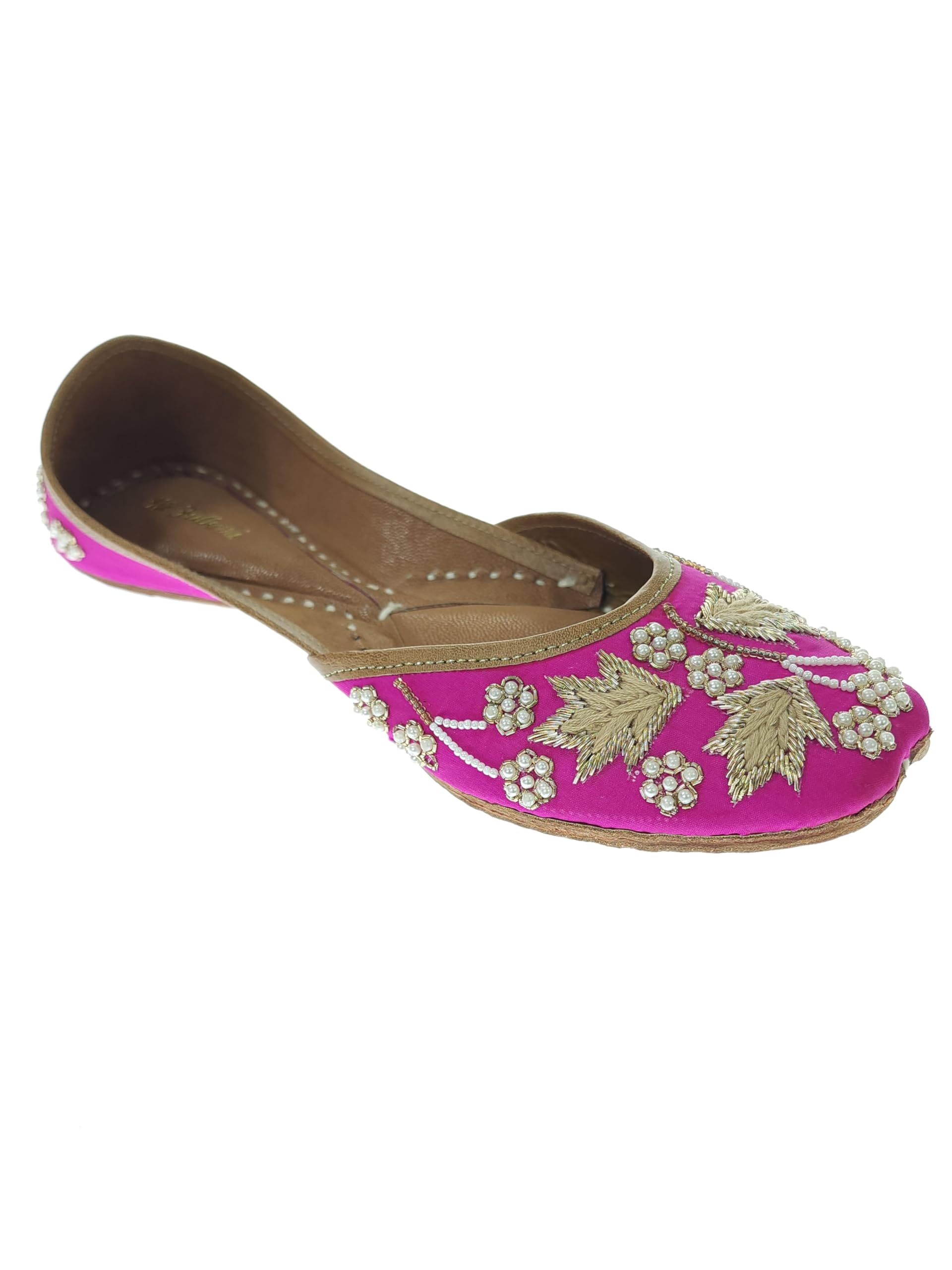 Fulkari Women Palm Leaf Gold Soft Embroidered Jutis | Bite and Pinch Free Jutti | Punjabi Formal Juttis | Girl's Wedding Flat Ladies Mojari | Formal Ethnic Juti |