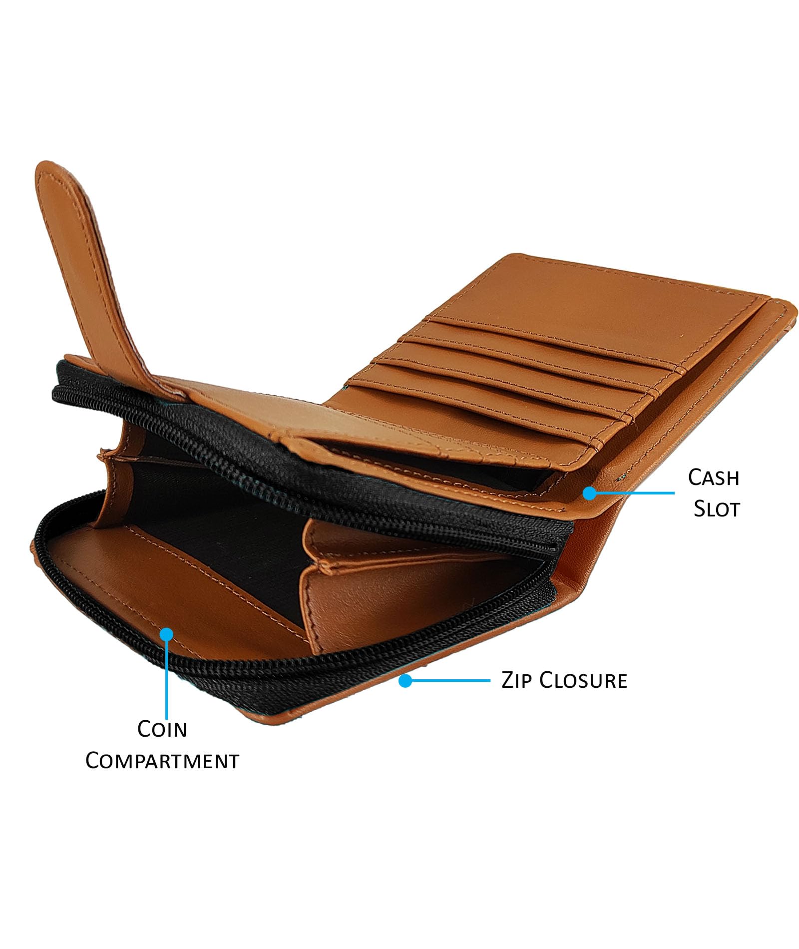 Funk For Hire Women’s Printed Black Vegan Leather Small Wallet with 8 Card Slots, 2 Hidden Pockets, Full-Length Cash Compartment, Zippered Coin Pouch, Compact Bifold Design