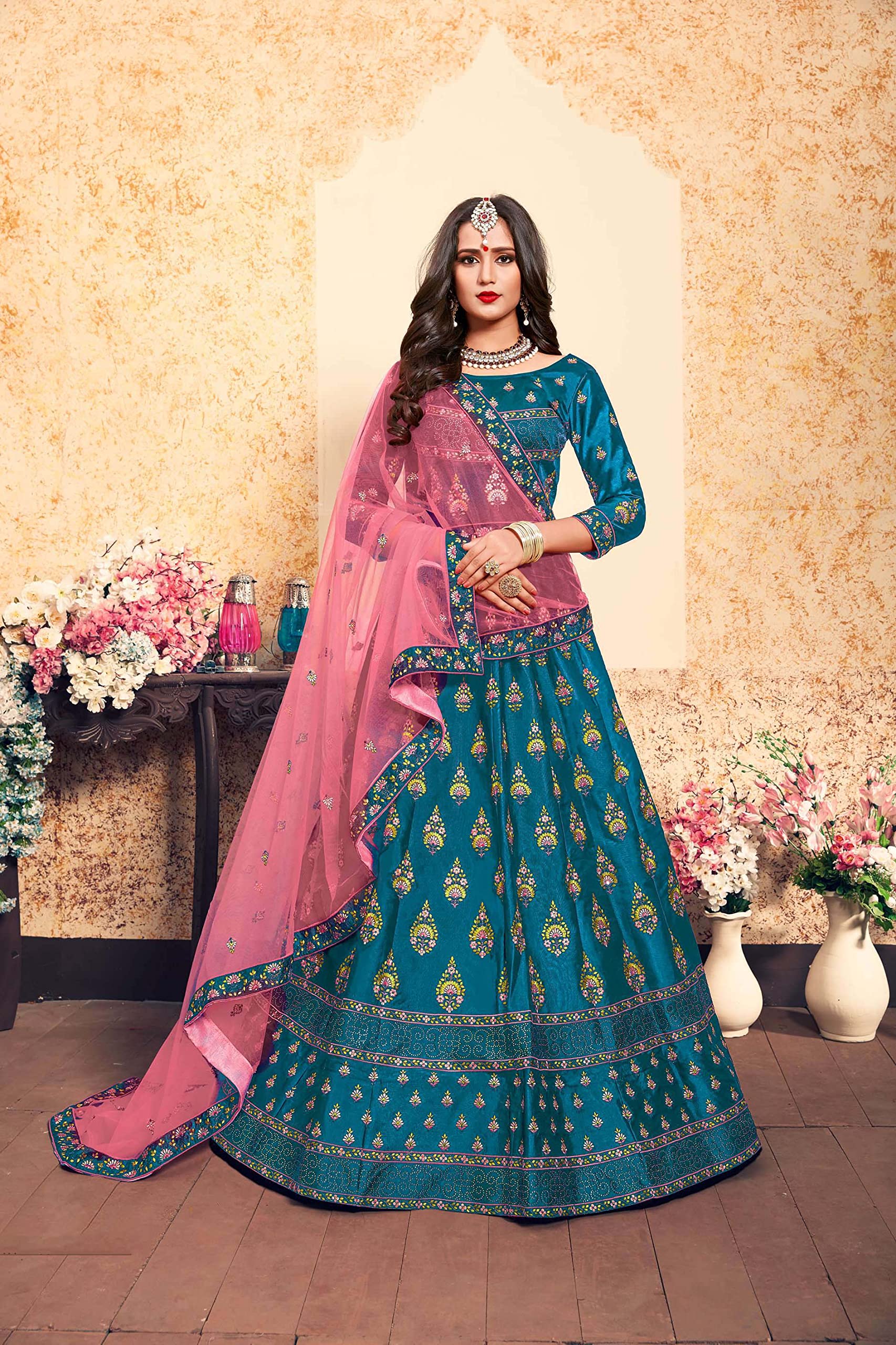 FUSIONIC Stylish Sky blue Satin base Lehenga Choli For Women