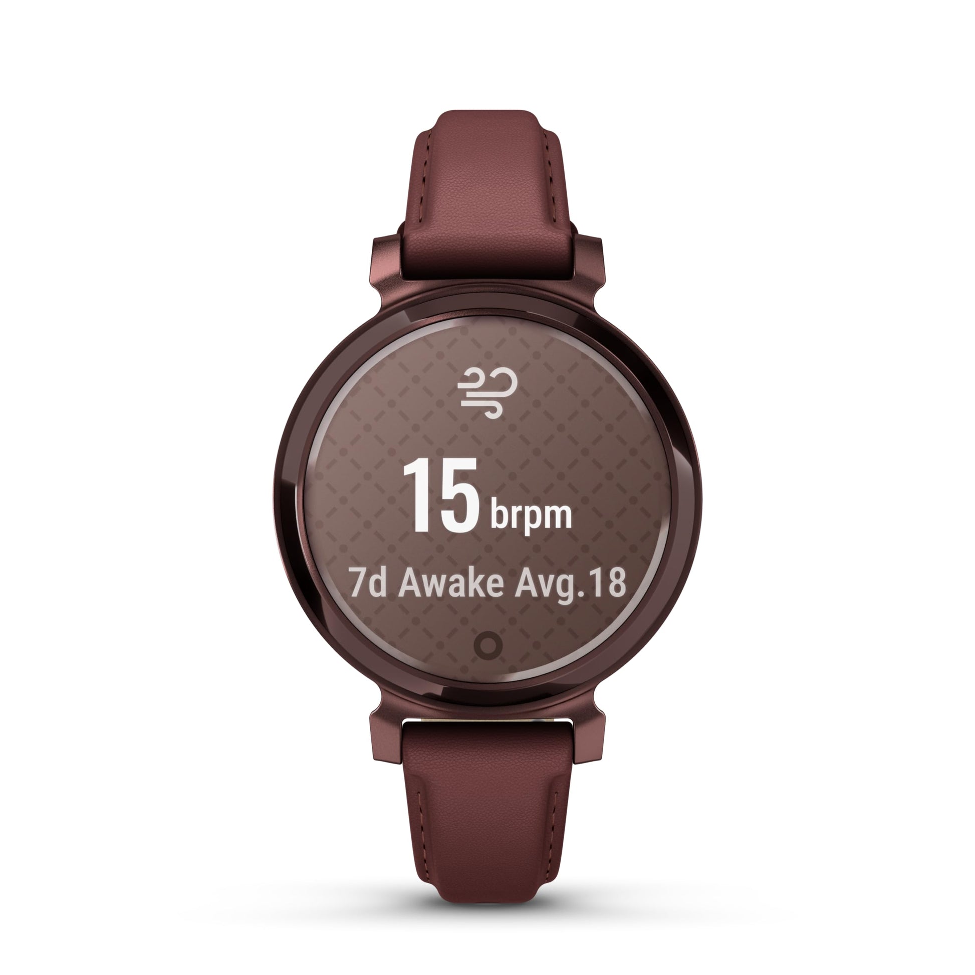 Details: Garmin Lily 2, Small and Stylish Smartwatch, Hidden Display, Patterned Lens, Up to 5 Days Battery Life, Mulberry