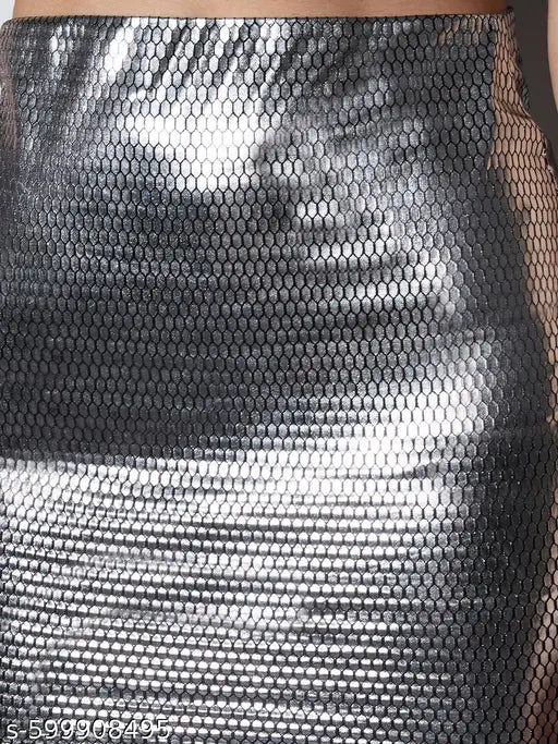 NameGlobus Women Grey Mid-Rise Self Design Stretchable Mini Party Pencil Skirt
