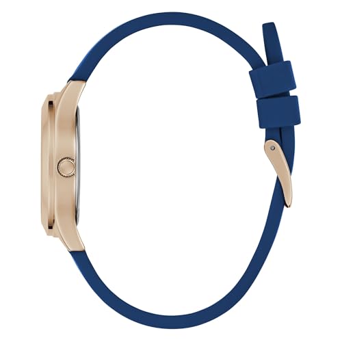 - Watch Type: Analog, Dial Color: Rose Gold, Dial Shape: Round, Strap Color: Blue, Strap Type: Strap, Water Resistant: 30 meters