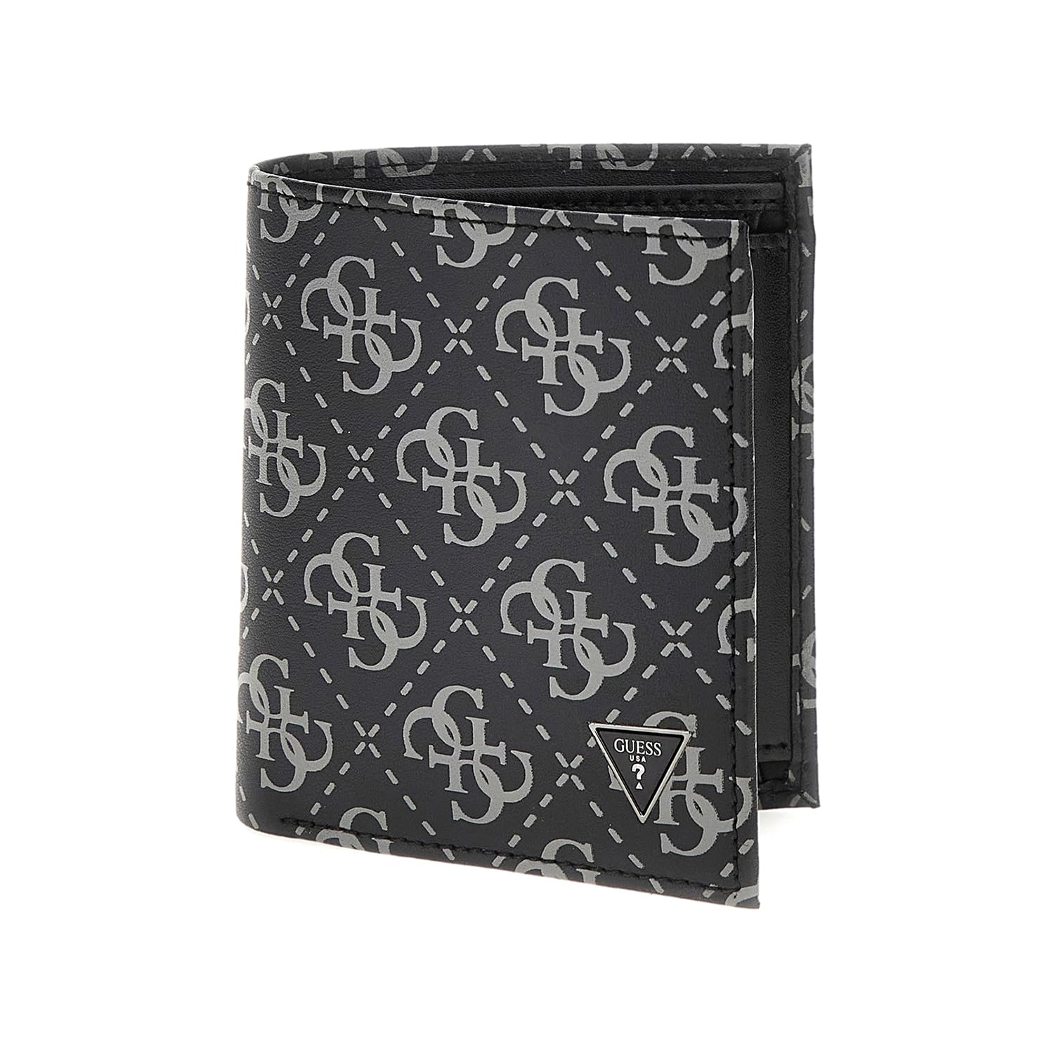 GUESS Black Monogram Leather Mito Bi-Fold Wallet