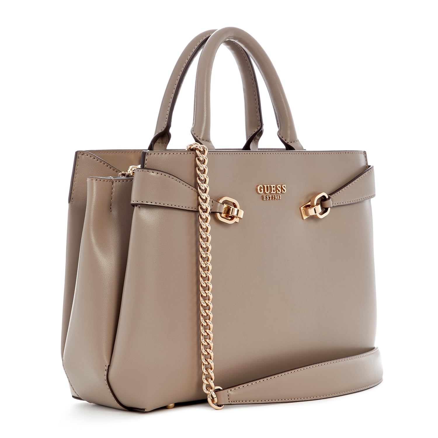GUESS Dark Taupe Solid Polyurethane Lorelei Girlfriend Satchel