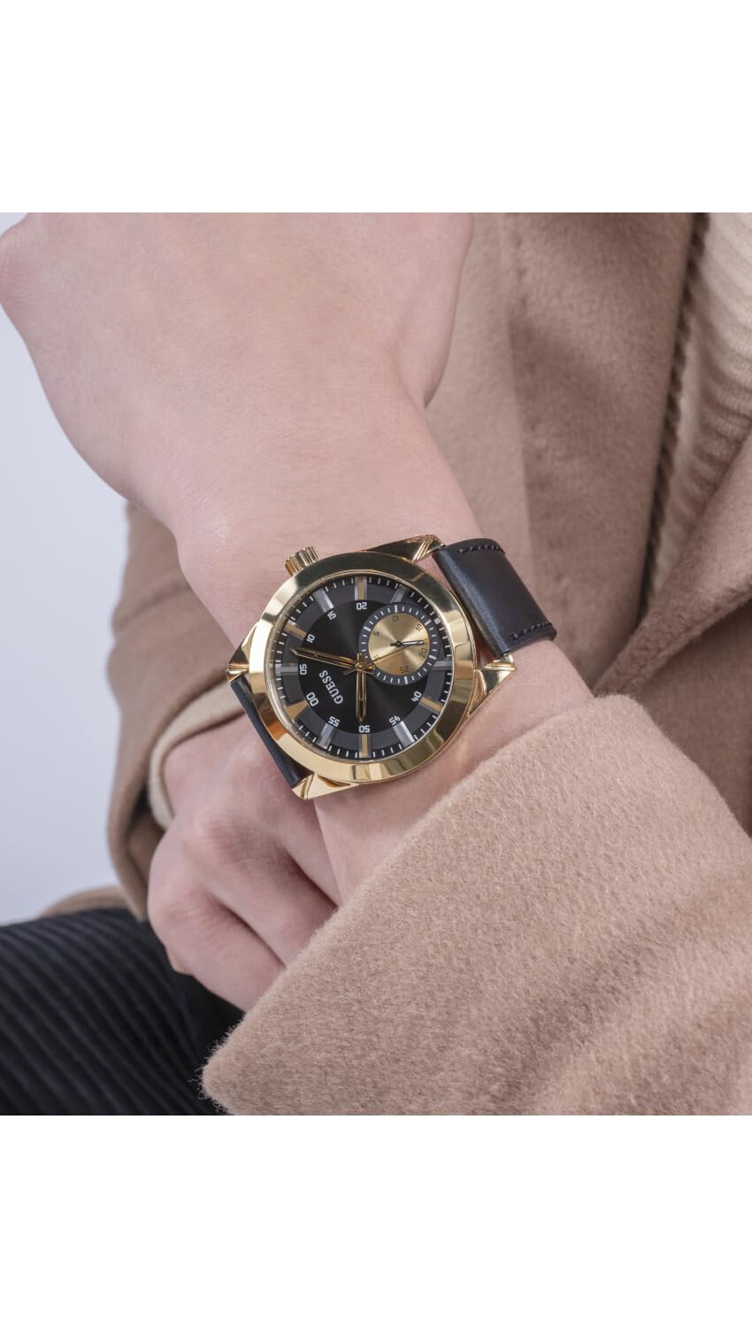 - Watch Type: Analog, Dial Color: Black, Dial Shape: Round, Strap Color: Black, Strap Type: Strap, Water Resistant: 50 meters