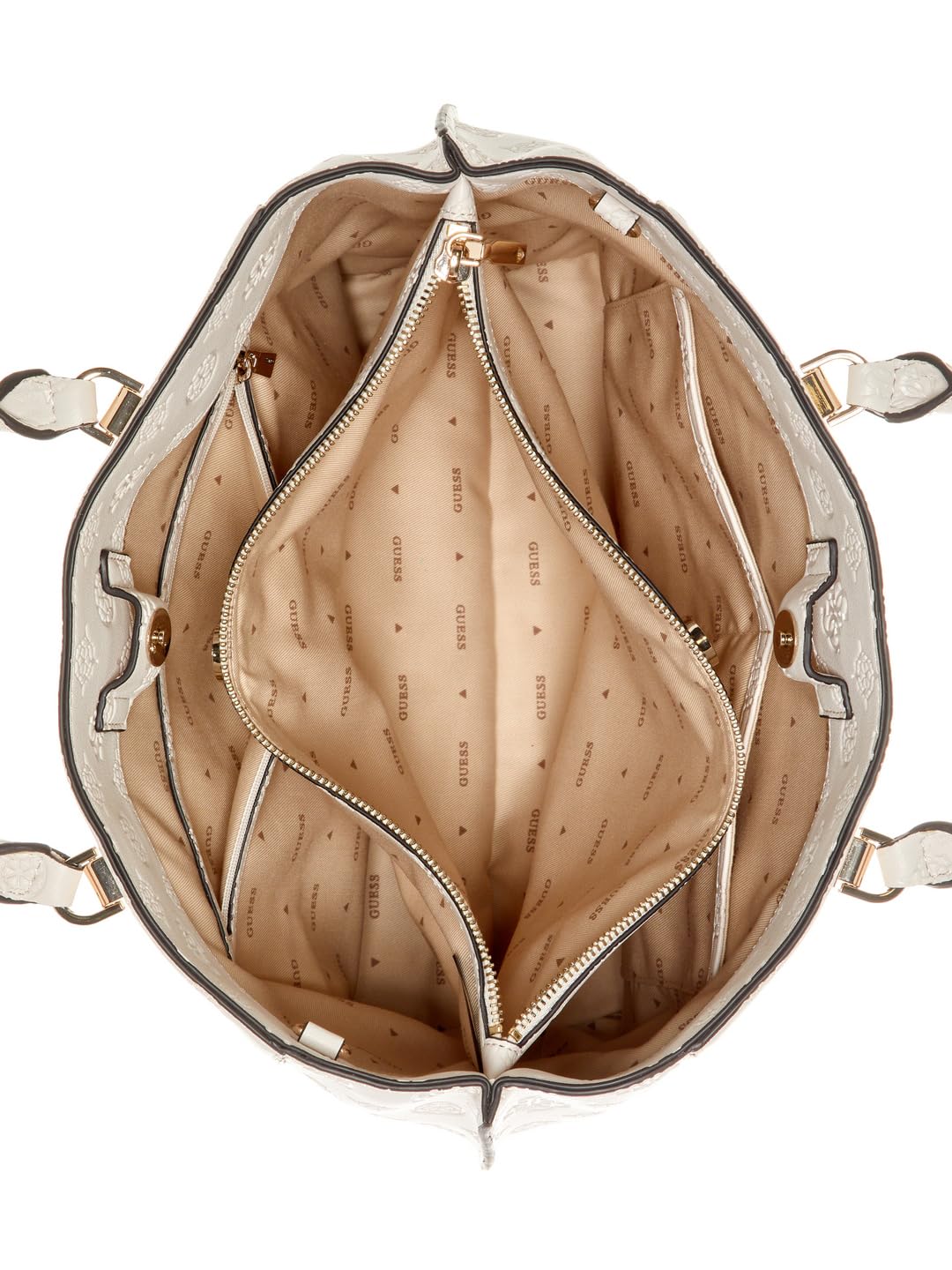 GUESS Off White Logo Textured Zarela Girlfriend Tote Bag