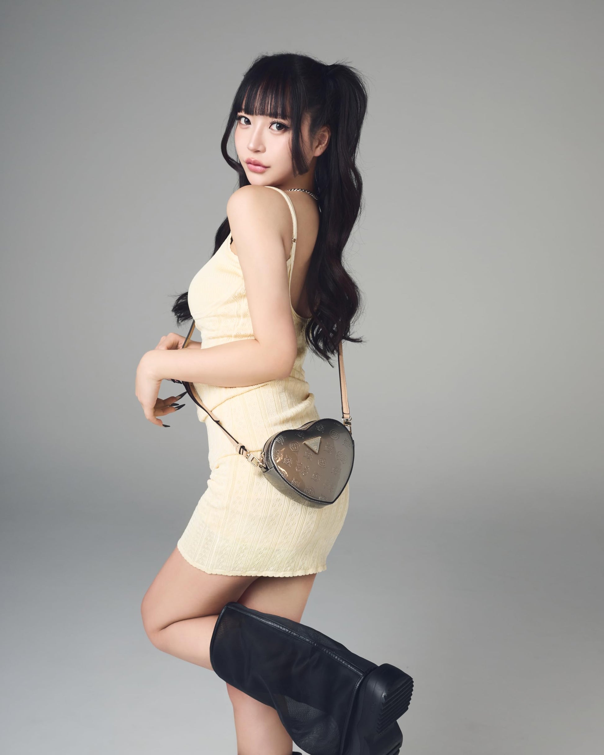 GUESS Pewter Logo Textured Arnela Mini Heart Shape Crossbody Bag