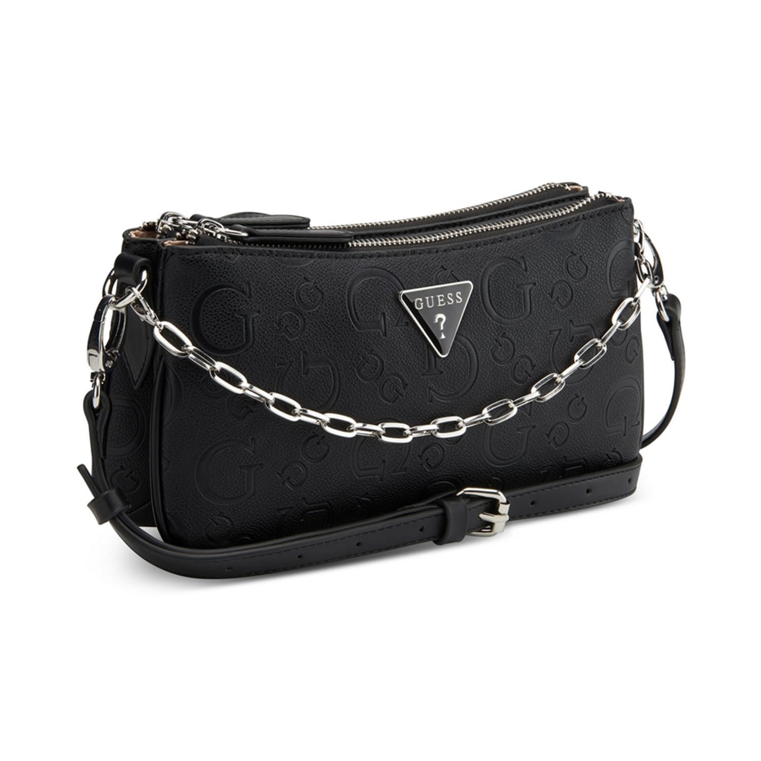 GUESS Women Black Typography Adjustable Detachable Strap Mini Crossbody Bag