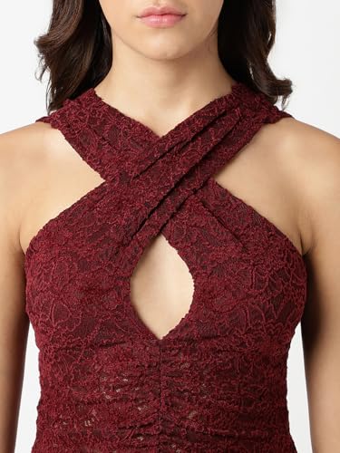 GUESS Women's Top W3YP19 KBU40 F44A Black, Black Cherry Multi, XL