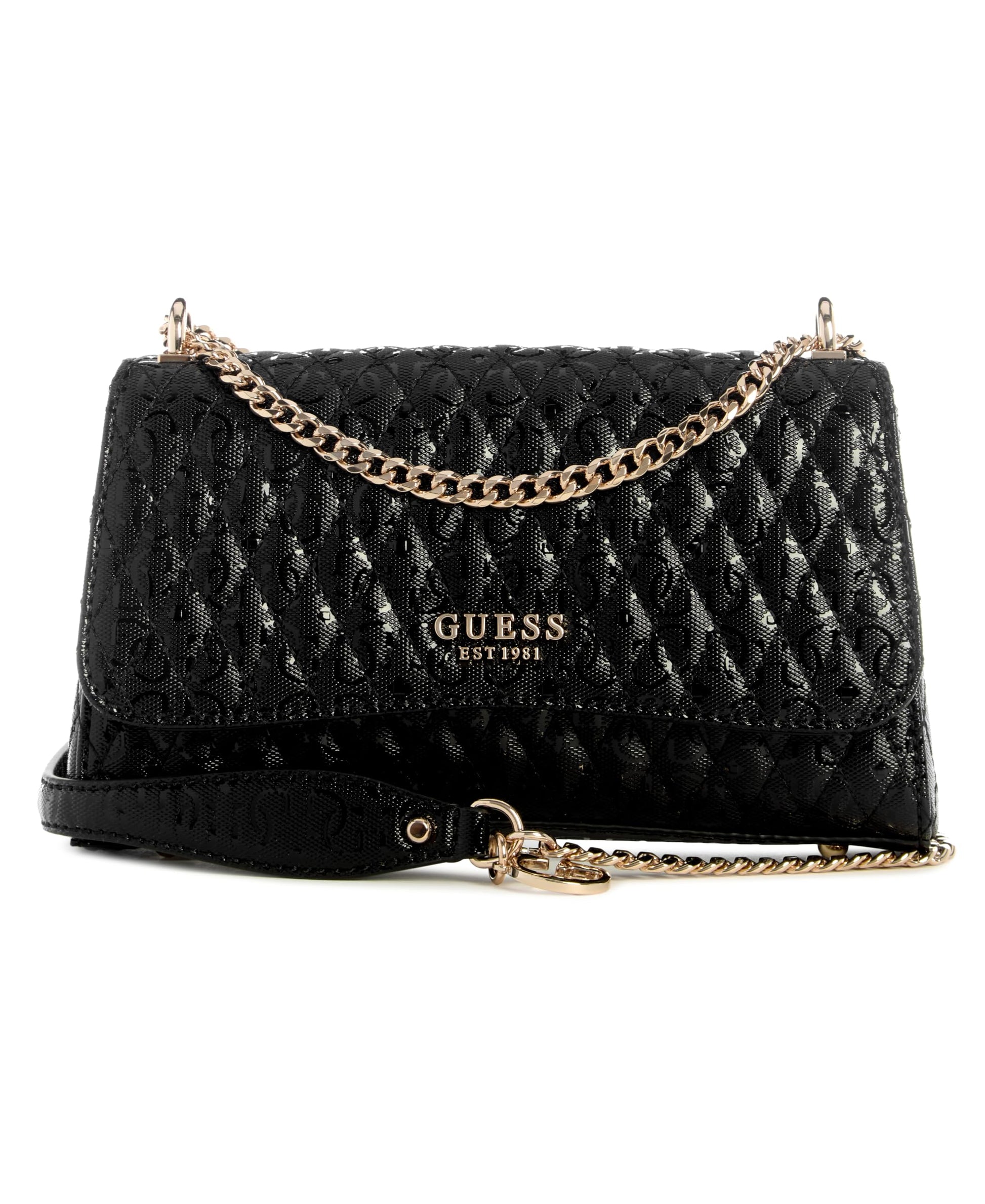 GUESS Black Quilted Polyurethane Betula Convertible Crossbody Bag
