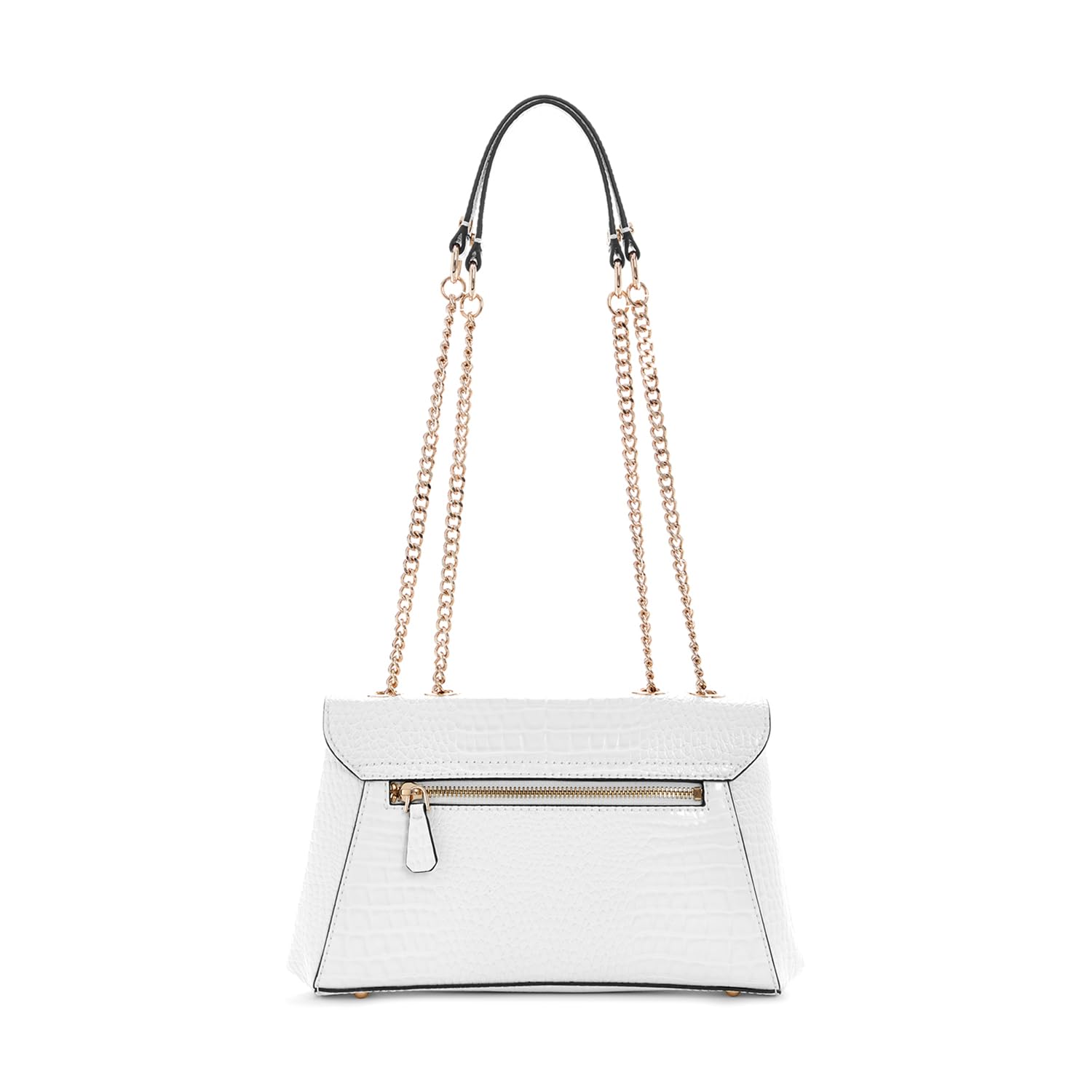 - Features a classic white shade with a minimalist textured pattern, making it a timeless fashion staple.