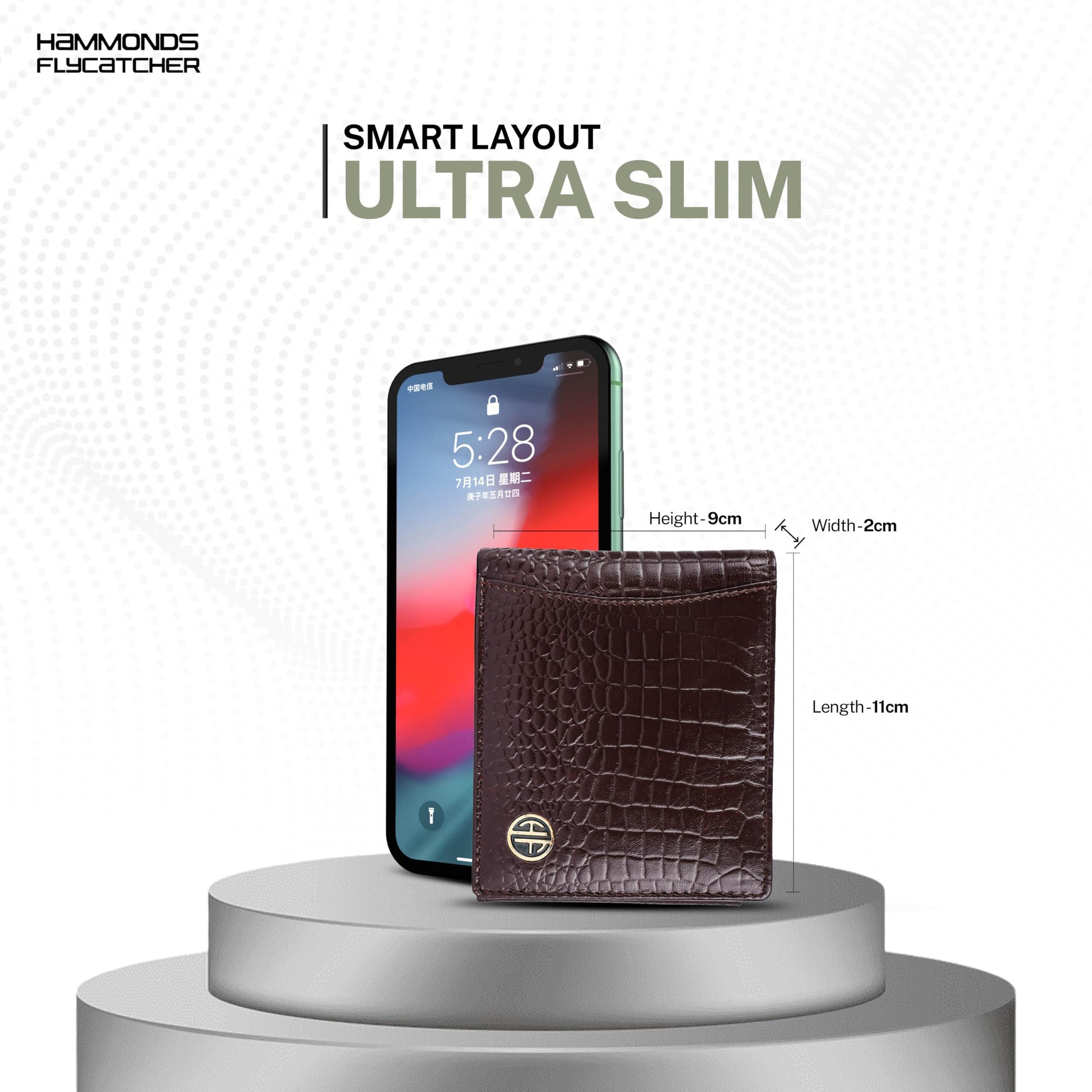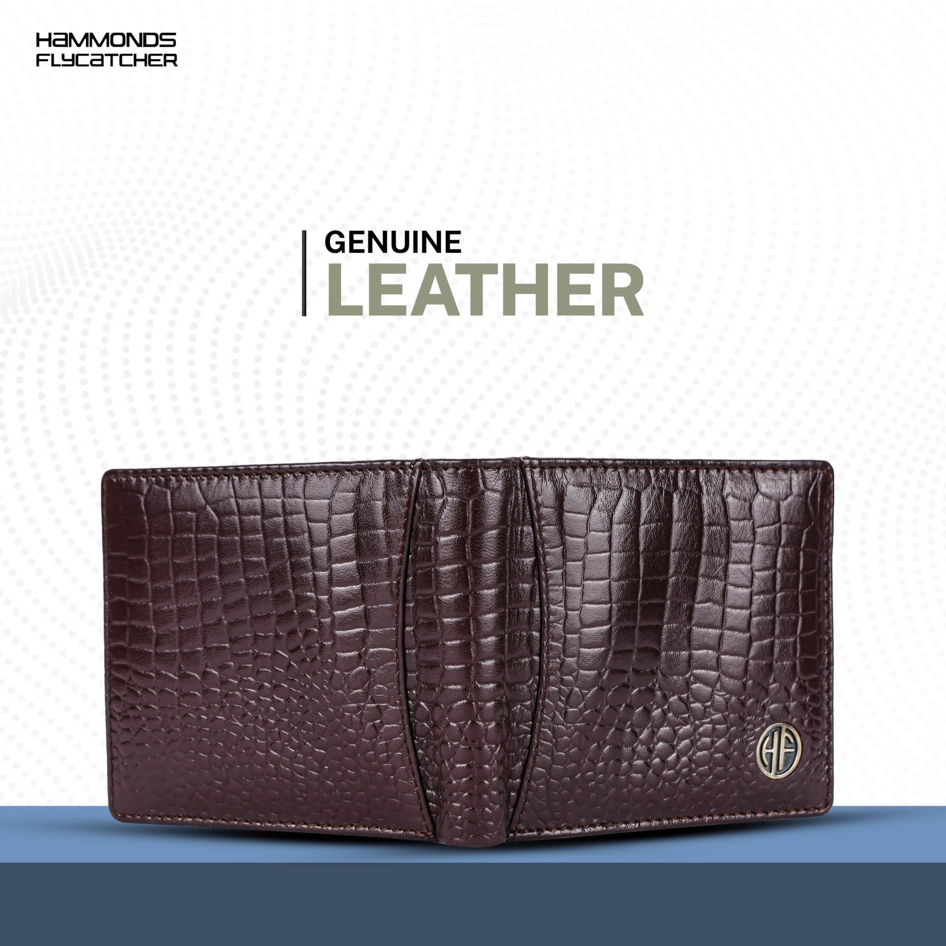 HAMMONDS FLYCATCHER Genuine Leather Wallet for Men, RFID Protected Leather Purse for Men, Money Purse for Men, Bi-Fold Wallet, 6 Card Slots, 3 ID Slots, Coin Pocket, Hidden Pockets - Croc Brown