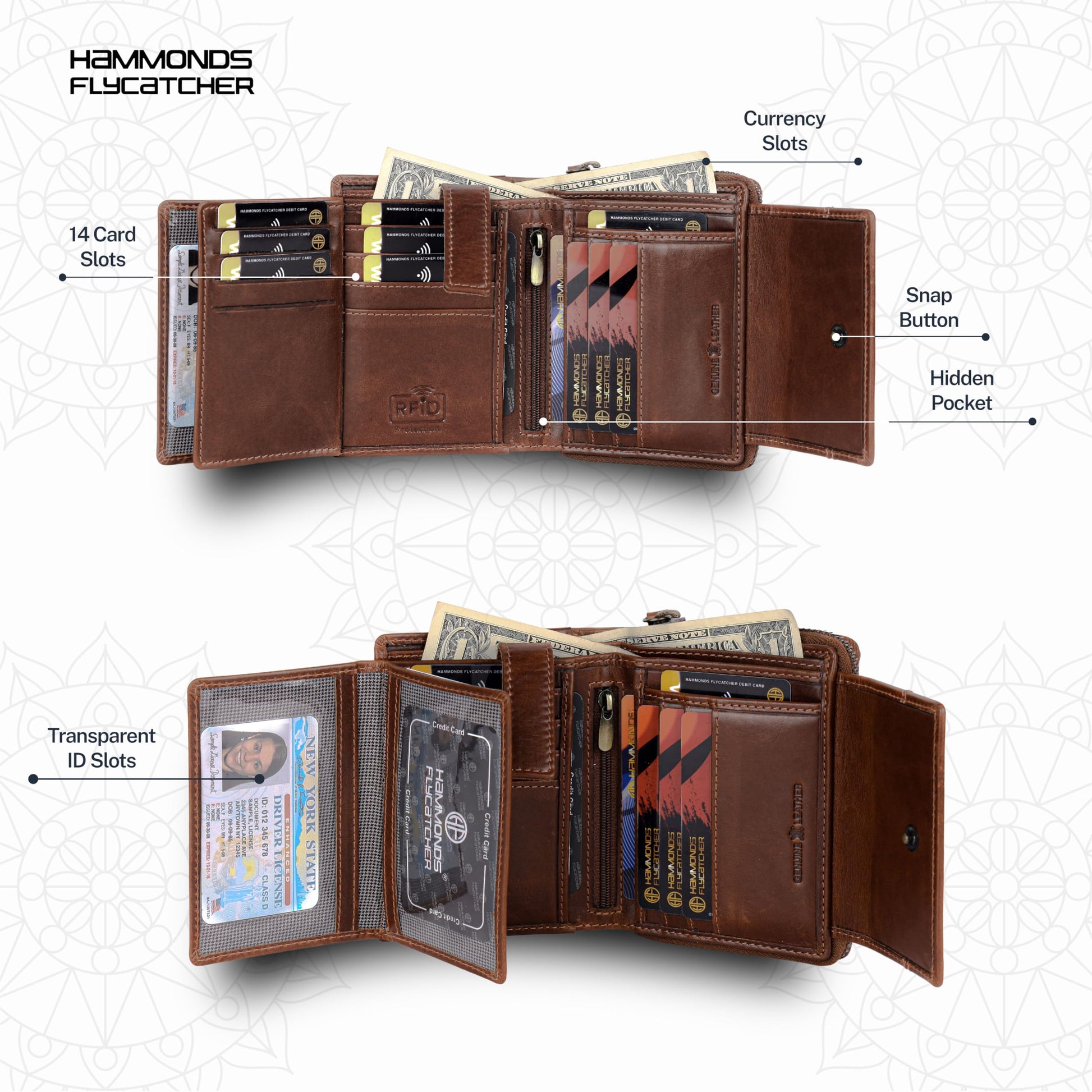 HAMMONDS FLYCATCHER Leather Ladies Wallet for Woman with 14 Card Slots - Clutch Purse for Women, Ladies Wallet for Women Stylish, Ladies Purse for Women Wallet, Gift for Womens - Blazing Brown