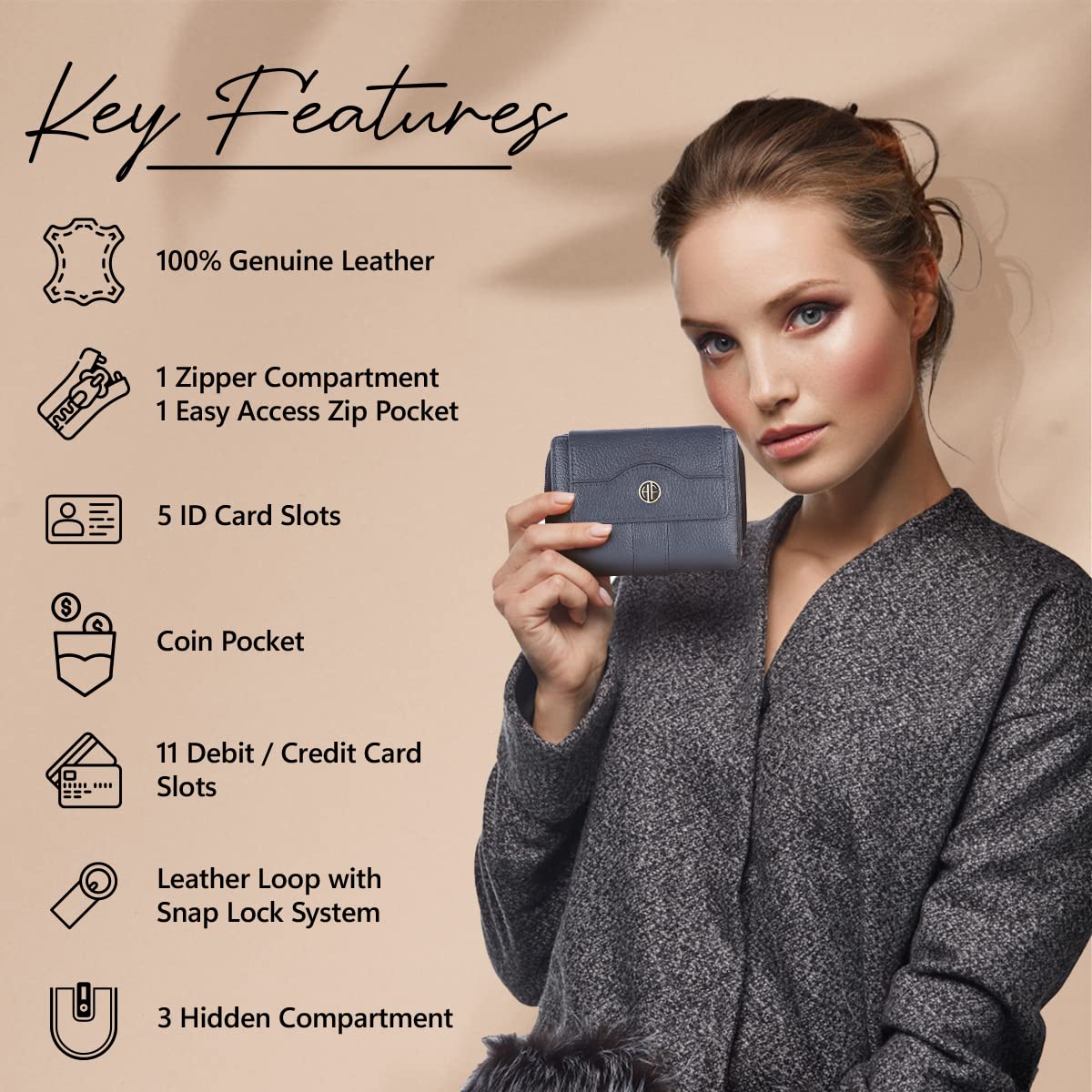 HAMMONDS FLYCATCHER Leather Ladies Wallet for Woman with 14 Card Slots - Clutch Purse for Women, Ladies Wallet for Women Stylish, Purse for Woman, Grey