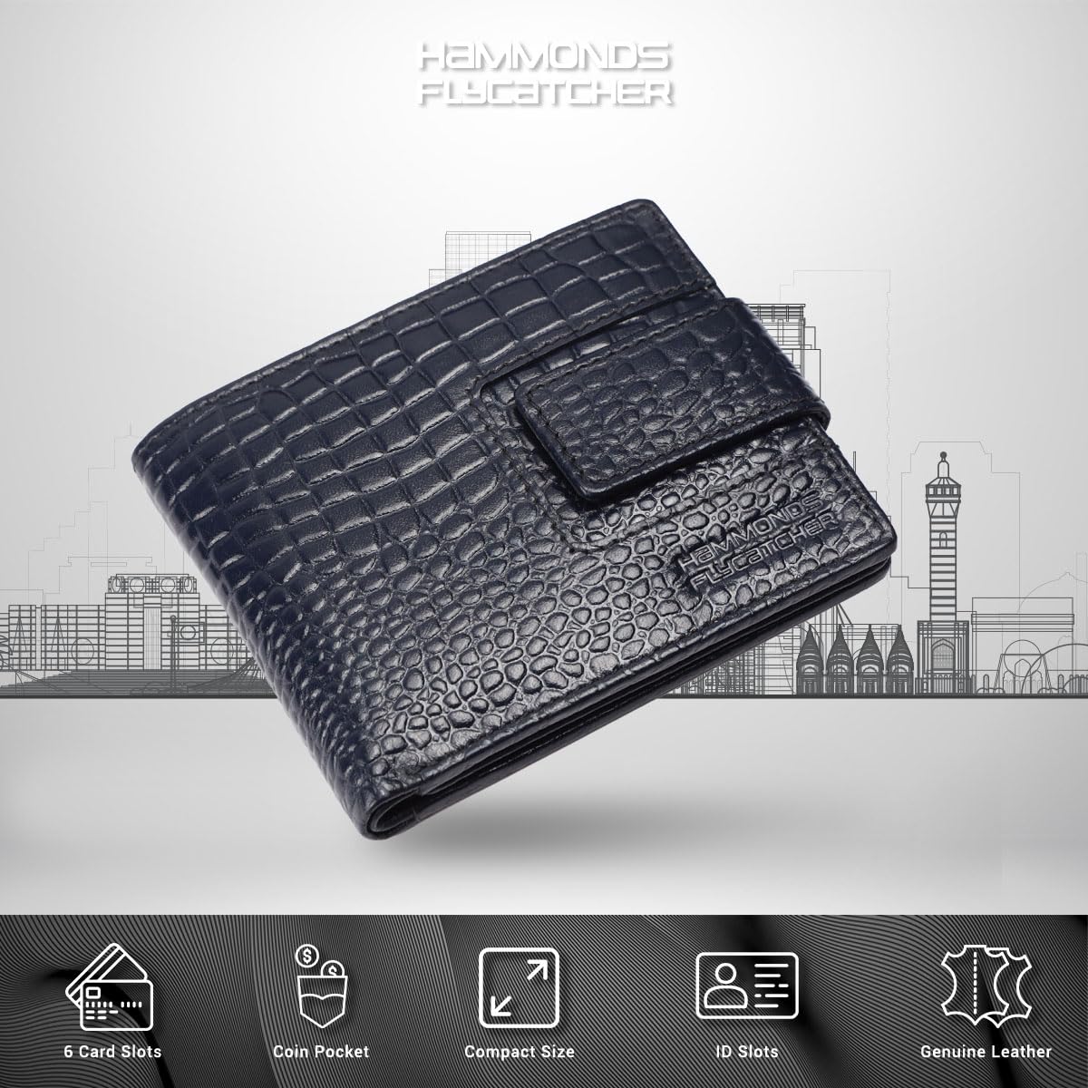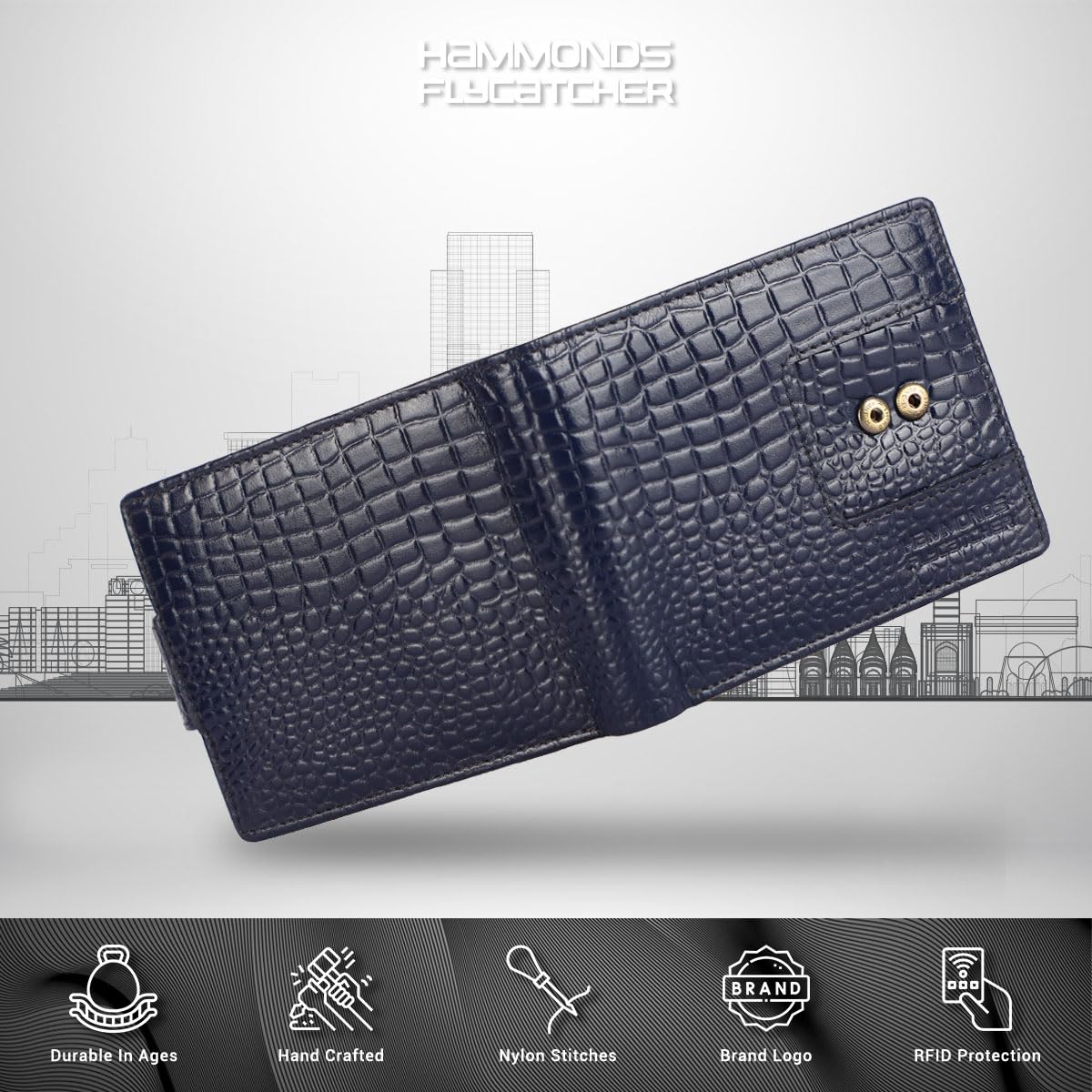 HAMMONDS FLYCATCHER RFID Wallet for Men Leather Original, Mens Wallet, Leather Wallets for Men Stylish, Bi-Fold Wallets for Man, 6 Card Slots, 1 ID Slot, Coin Pocket, Gift for Mens - Croc Blue